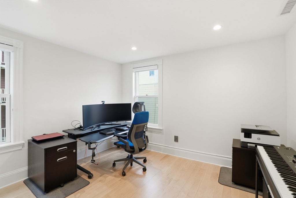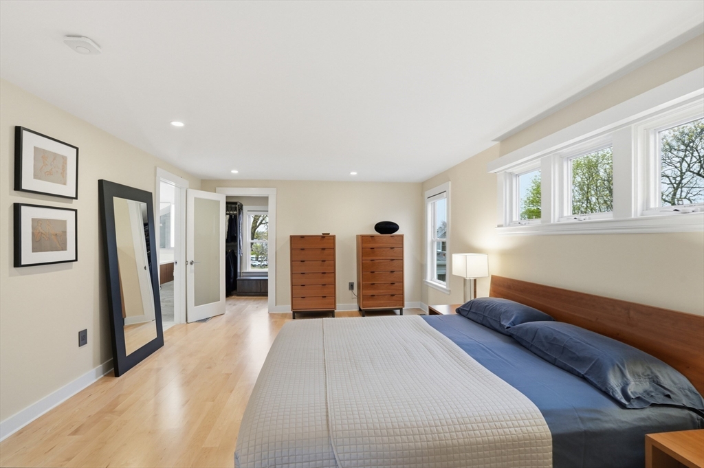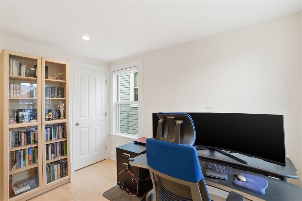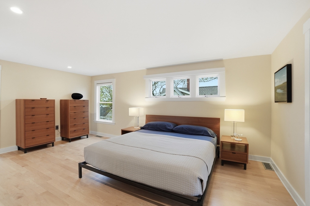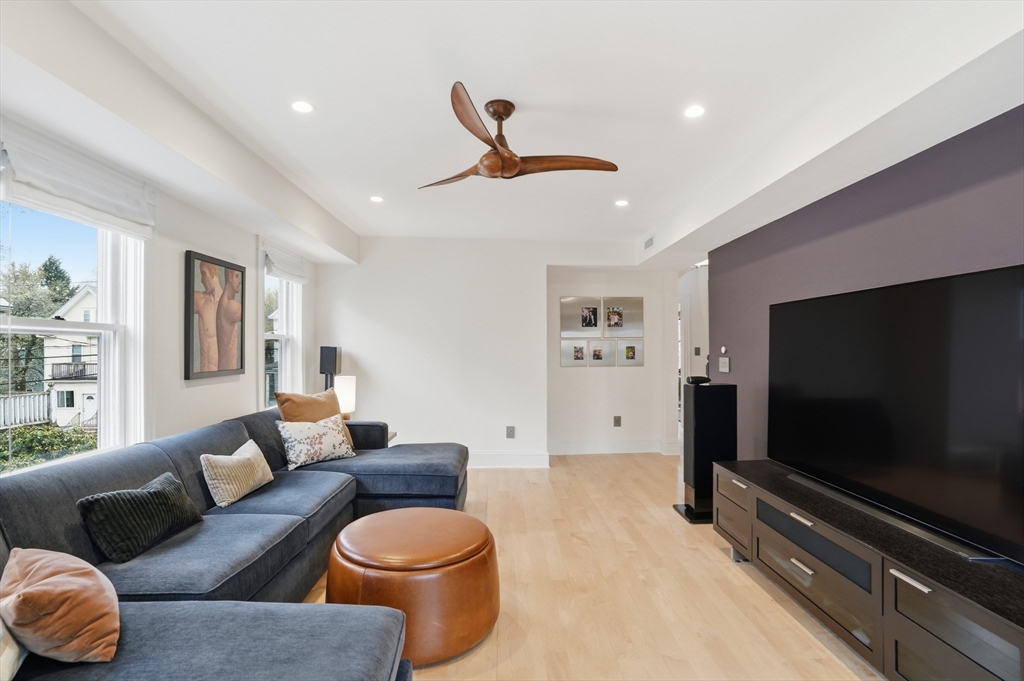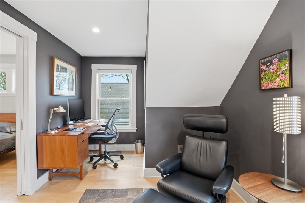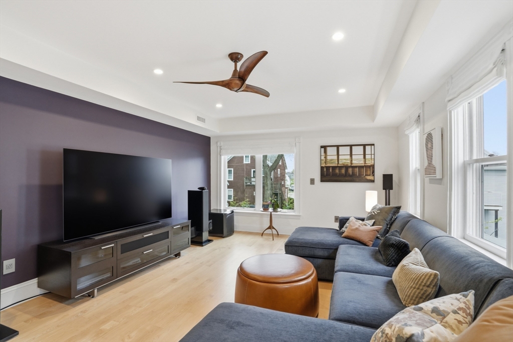 This stunningly renovated turnkey home artfully combines an historic Victorian exterior with a striking modernist interior for the best in luxury living! The main level is flooded with light on 3 sides from the living room's bay window in front to the kitchen's French doors in back. And what a kitchen! Warm yet sleek custom cabinets and spectacular quartzite counters and backsplash are the perfect backdrop for the finest Wolf & Sub-Zero appliances - 36" induction range plus built-in combi-steam and microwave ovens for whipping up everything from gourmet feasts to reheating leftovers with ease. Enjoy that meal in the dining area or step outside to the landscaped garden and patio. 2nd floor includes full bath, 2 bedrooms, laundry room, and large 2nd living area that can easily be another bedroom. Above is the grand primary suite w/stunning bath, walk-in closets, and bonus room for office or nursery. Large garage (wired 4 chg), mudroom, basement storage all just blocks from Davis Square!