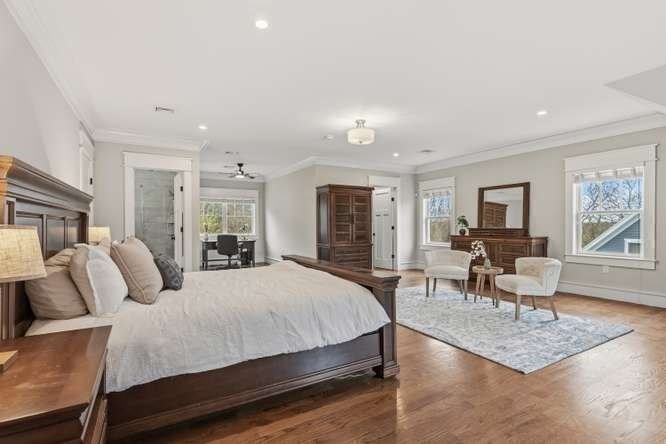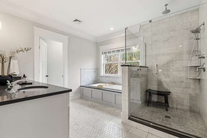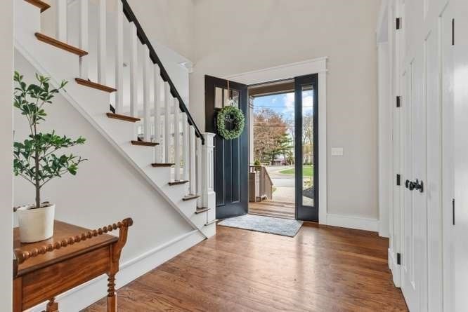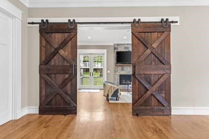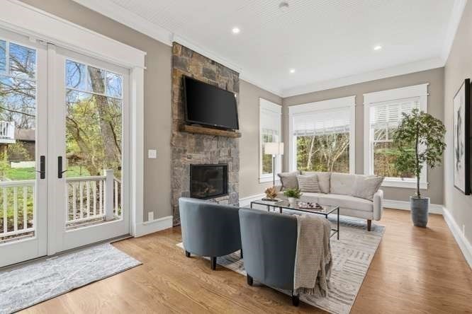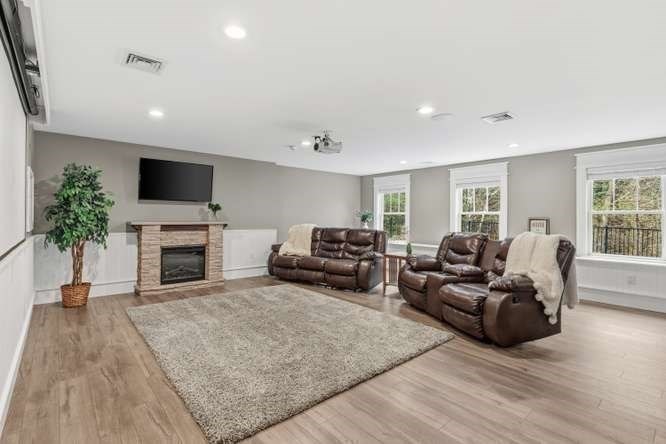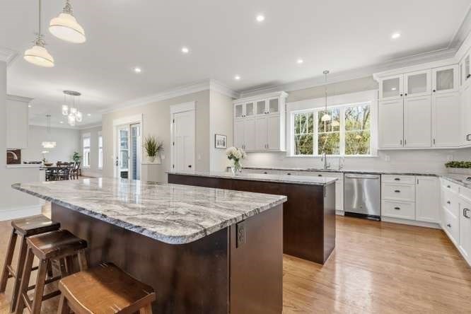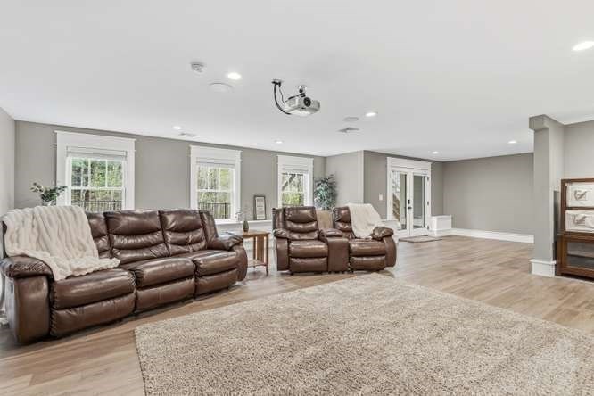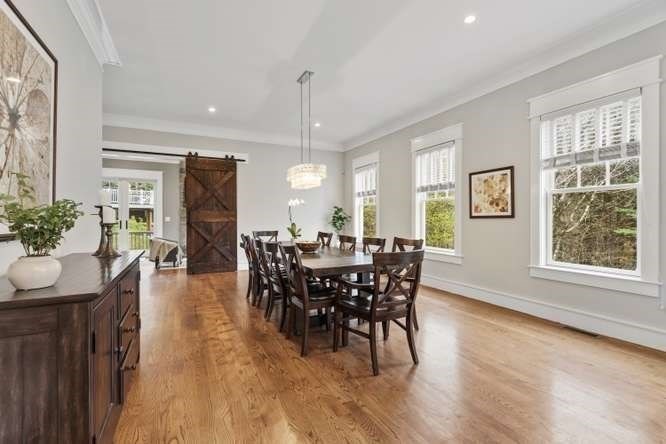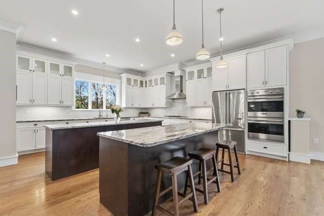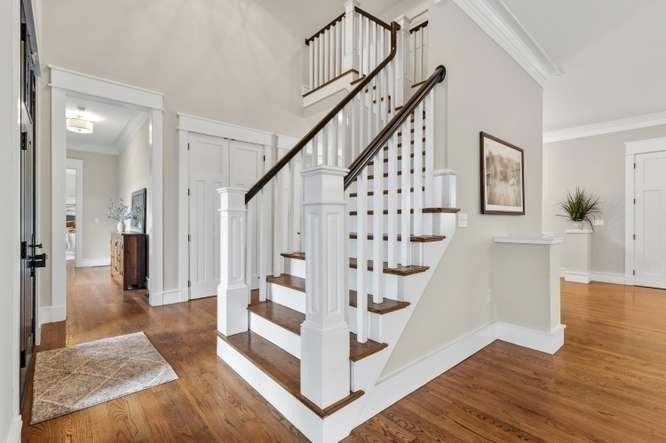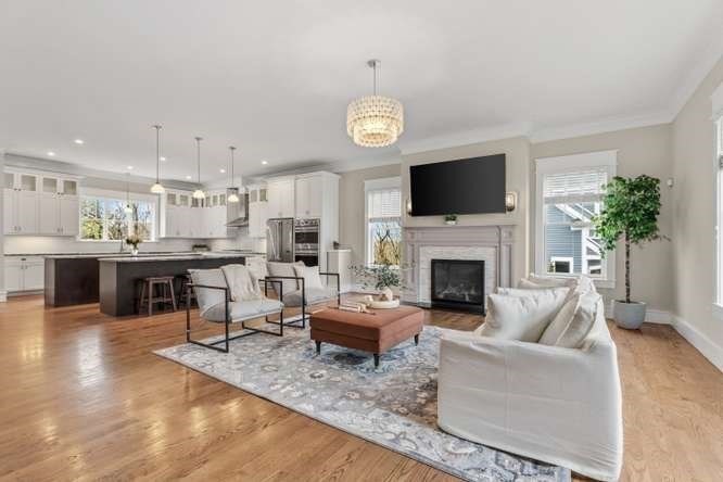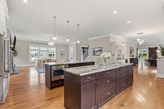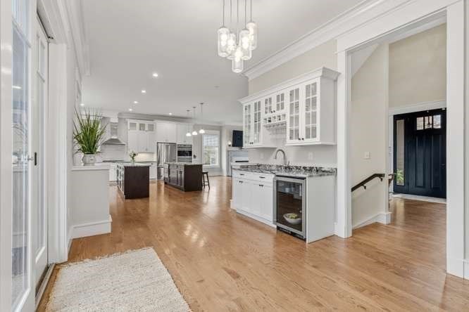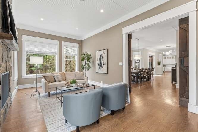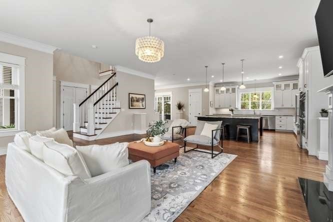 Exquisite home nestled in sought after Winchester neighborhood! This breathtaking home checks all the boxes on the wish list! Welcoming sun-filled entry foyer, soaring ceilings, gleaming hardwood floors & open concept flow. Inviting living room w/gas fireplace. Fabulous gourmet kitchen complete w/ Viking appliances, walk-in-pantry, dining area, coffee/wet bar & wine chiller. Sliding doors open to deck w/ serene wooded views overlooking level fenced in backyard. Elegant dining room, Family room w/stone fireplace adjacent to in-law or home office suite w/lush bath & separate entrance. Second floor offers luxurious master suite featuring spa-like marble bath w/oversized shower & soaking tub, dressing room, office nook & private deck retreat. 3 additional generous sized bedrooms w/ensuite baths & laundry room. Lower level features a spacious media/game room that opens to backyard & mudroom w/ direct access to oversized 2 car garage/work space. Highest quality systems & finishes throughout!