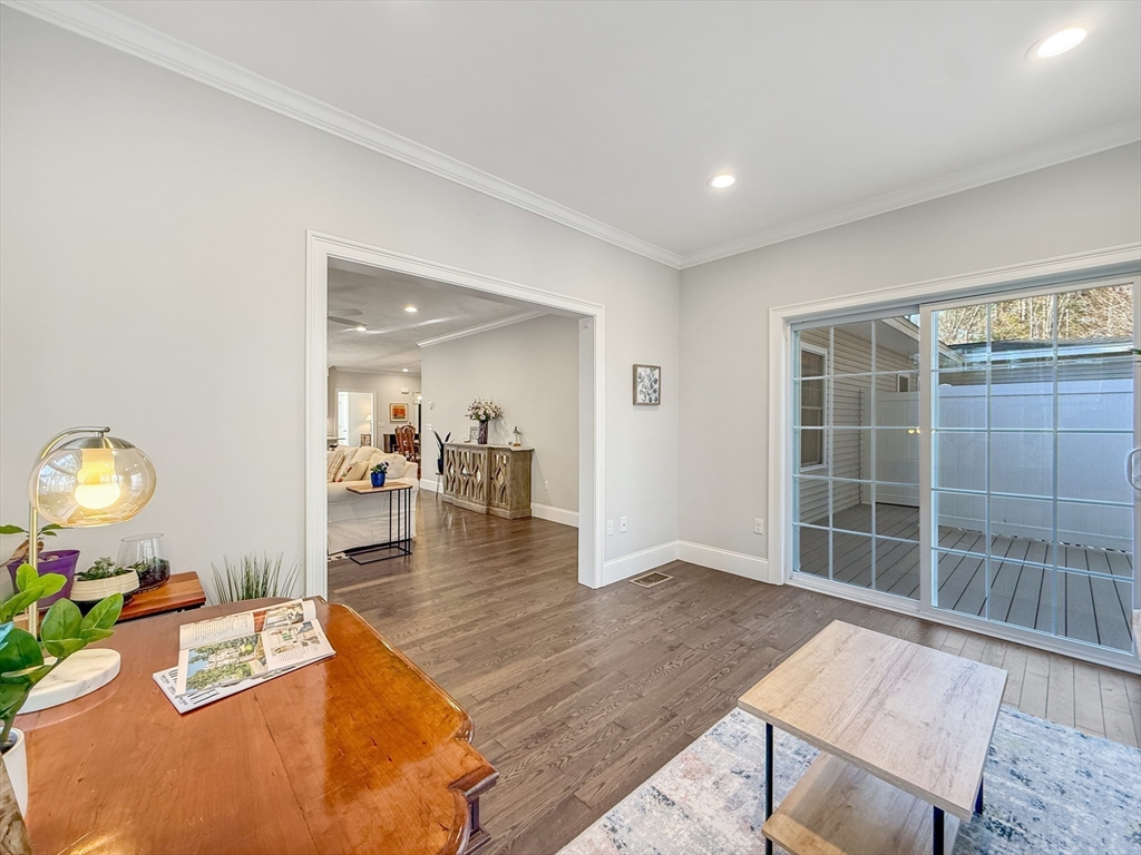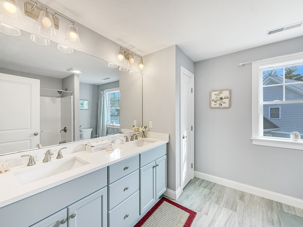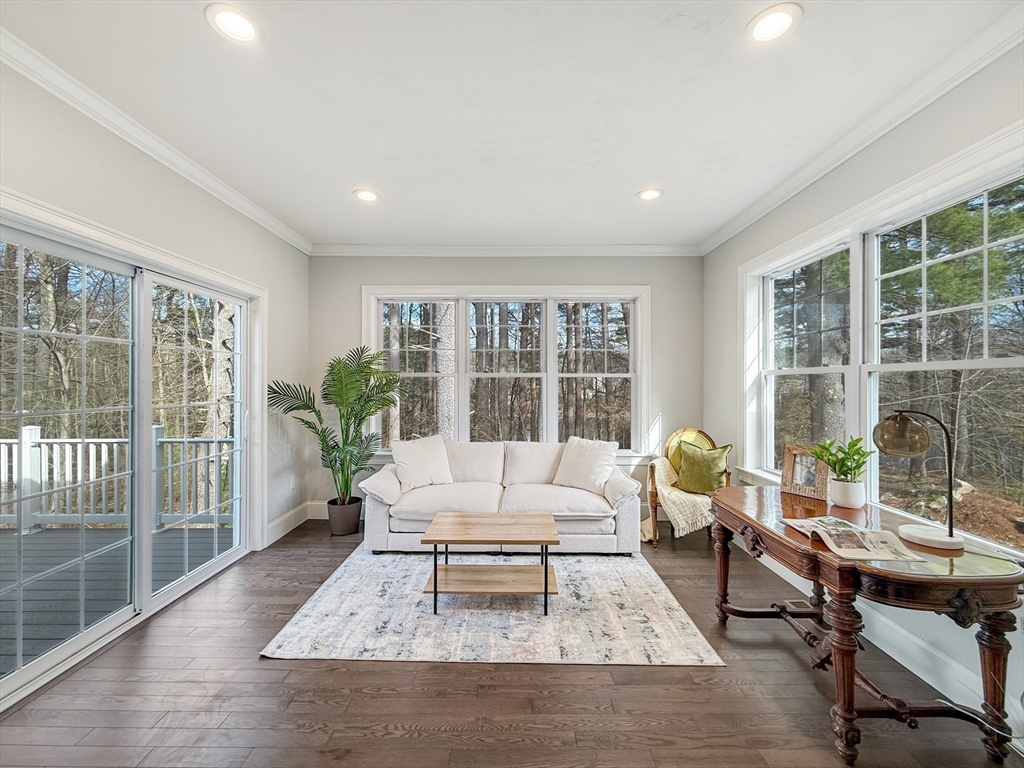 Welcome to Maspenock Woods, a hidden gem offering serene lakeside living in a beautiful, close-knit community. This sun-drenched home has windows facing east, south, and west, filling the space with natural light all day long. Enjoy your sunroom and private deck with direct water views. Hardwood floors throughout the first level with open floor plan. Gorgeous kitchen with quartz countertops, SS appliances, center island, and beautiful cabinetry. Convenient first-floor primary suite with his & hers WICs. Upstairs, you’ll find a spacious loft, a large bedroom with a wrap-around WIC, a full bath with double sinks, along with additional unfinished space. The large walkout basement offers even more potentials. Set on a quiet cul-de-sac, the shared green feels like your own front yard. Enjoy the direct access to Lake Maspenock, walking trails along the water, and a community boathouse with kayaks/canoes. The easy access to I-495 and the Mass Pike makes commuting a breeze. Don’t miss it!