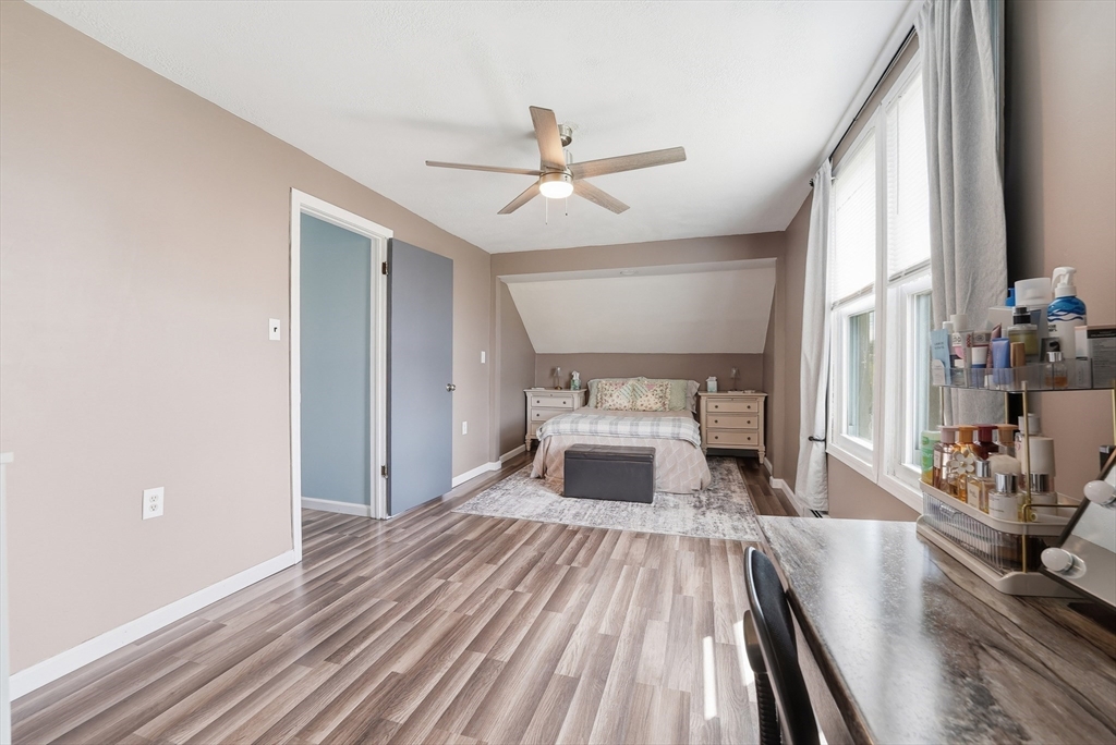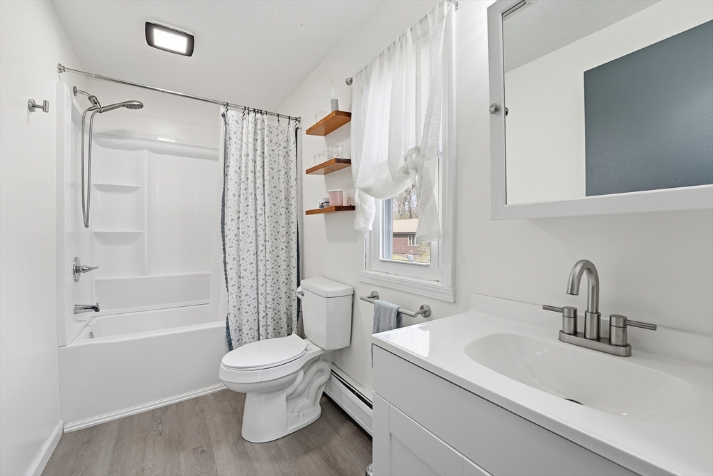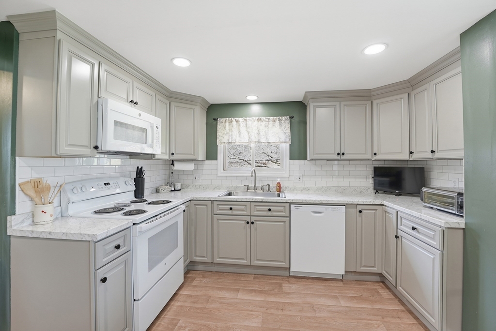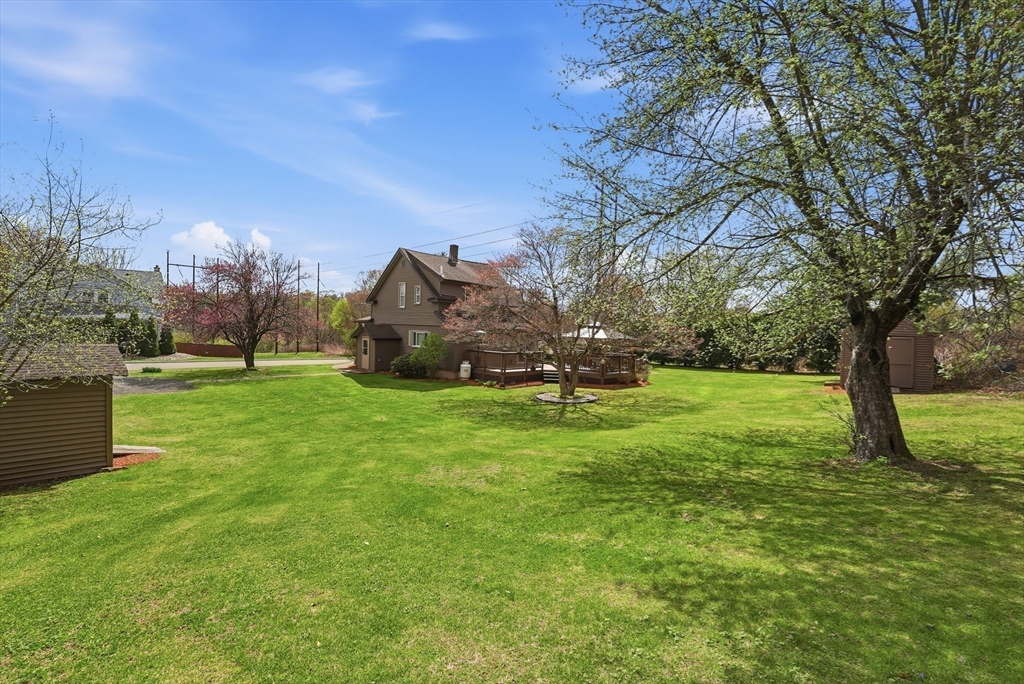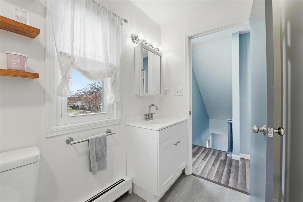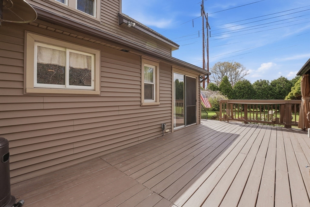 Don't Wait On This Exceptional Vinyl Sided Colonial that's been beautifully updated found on a non-thru street set on a picturesque half acre lot with garden area & firepit! From the handy mudroom you'll find a tastefully updated kitchen w/stylish new cabinets & flooring, classic wainscoting, recessed lighting w/night lights. Perfect for gatherings in the spacious living rm w/wood laminate flr flows into an inviting dinrm w/wood flrs w/slider to large deck for entertaining with wood canopy. An updated half bath completes the lst flr. Upstairs discover new wood laminate flooring throughout, a very good sized main bedroom w/walk in closet, recessed lighting w/night lighting, a sparkling updated full bathroom and two additional spacious bedrooms one has access to the walk-up attic. Partially heated simply finished basement w/private workshop, extra storage & separate laundry room. Plus newer (1) mini split, a new electrical panel inside & new outside service. You'll Love Living Here!