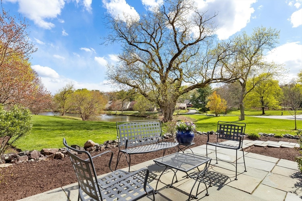 Spectacular end unit practically freestanding and featuring an absolutely breathtaking view of the water at desirable Potter Pond Village offers the best of One-Level Living! A gorgeous park-like setting w/ 100 meticulously maintained homes in a lovely community that features tennis/pickleball courts and walking trails. This one-owner unit w/ a very private setting has an abundance of natural light. A large entry foyer welcomes you into this special home w/ sun-splashed family room with sliders to a large bluestone patio overlooking the water, formal dining room, large kitchen and laundry. The 1st floor primary suite offers numerous closets and luxurious private bath. There is also a large 2nd bedroom and another full bath on the 1st floor.The second level offers an enormous flex-space ideal for office, possible 3rd Br, or fitness room. Great expansion potential in lower-level. Close to public transportation, commuter routes, schools, & shopping. One car garage and ample guest parking