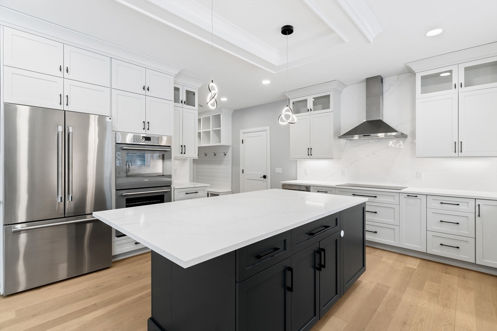 MOVE IN NOW. Welcome to King Philip Estates! This stunning 4BR Colonial offers 4,193sf of luxury living in a cul-de-sac community w/ amazing curb appeal, featuring board & batten siding, black windows, & charming covered front entry. Located w/ easy access to Route 495 & the Outlets. A grand foyer w/ custom staircase, black balusters, & elegant moldings sets the stage. The family room features a fireplace w/ shiplap woodwork & oversized first-floor windows. The custom kitchen boasts a coffered accent ceiling over the island, Thermador appliances, & a spacious island. The vaulted primary suite offers a spa-like bath, 4 closets & a vanity area. The finished bsmnt has a full bath & direct access to the rear yard via a dedicated staircase. Outside, enjoy a composite deck, professional landscaping & a fenced yard. Don’t miss this opportunity-schedule your private showing today!! 6 others avail. *Virtual staging shown, as well as enhanced grass on exterior photos*