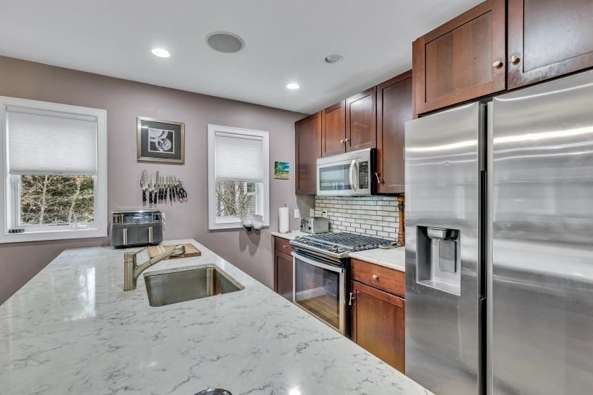 Situated on a quiet desirable area south of Rte. 28, conveniently located near all Mashpee has to offer, as the beach, boating, walking trails, the marketplace and more! This home offers the perfect balance of privacy and nature. Custom designed to enhance the natural beauty of the outside. A very comfortable open floor plan, designed for entertaining, plus lots of glass to bring the outside in! 3 Bedrooms, 2.5 baths, hardwood flooring throughout, central AC and gas heat. 2 gas fireplaces. 2 car garage and over an acre and a half of nature!