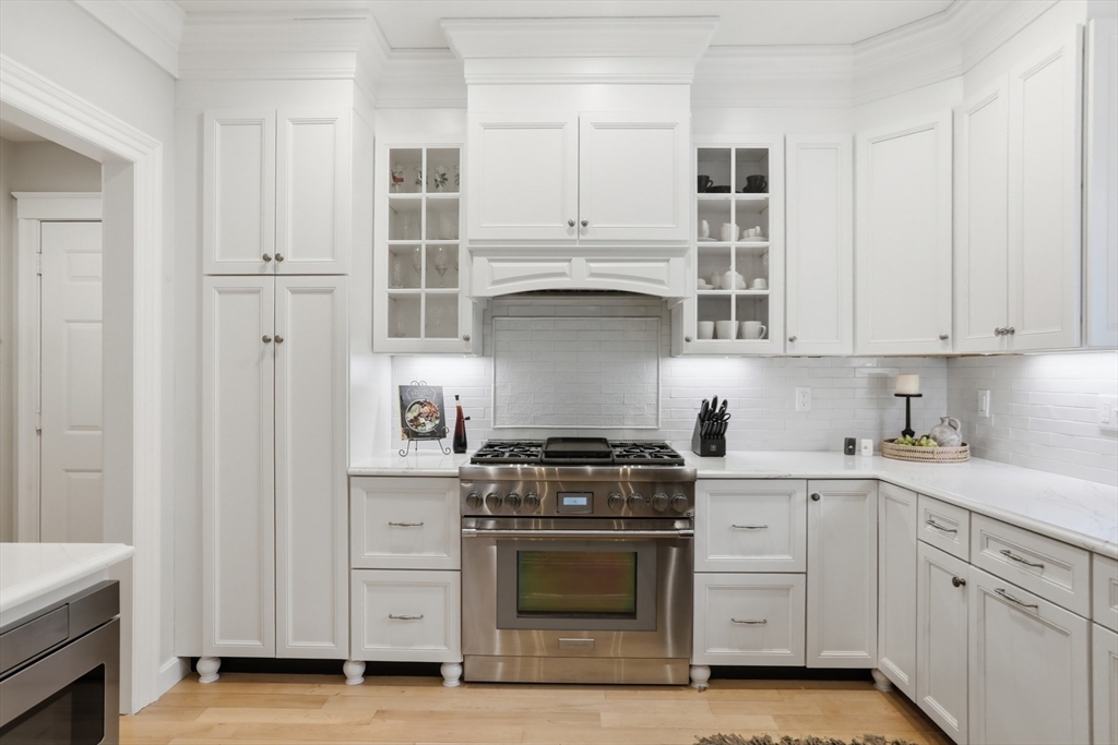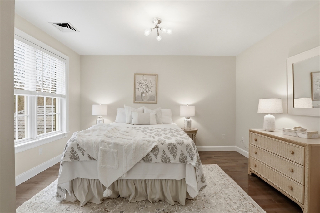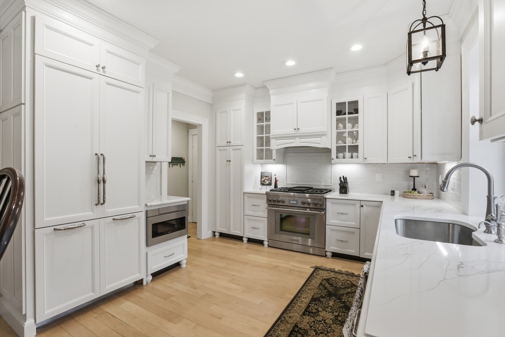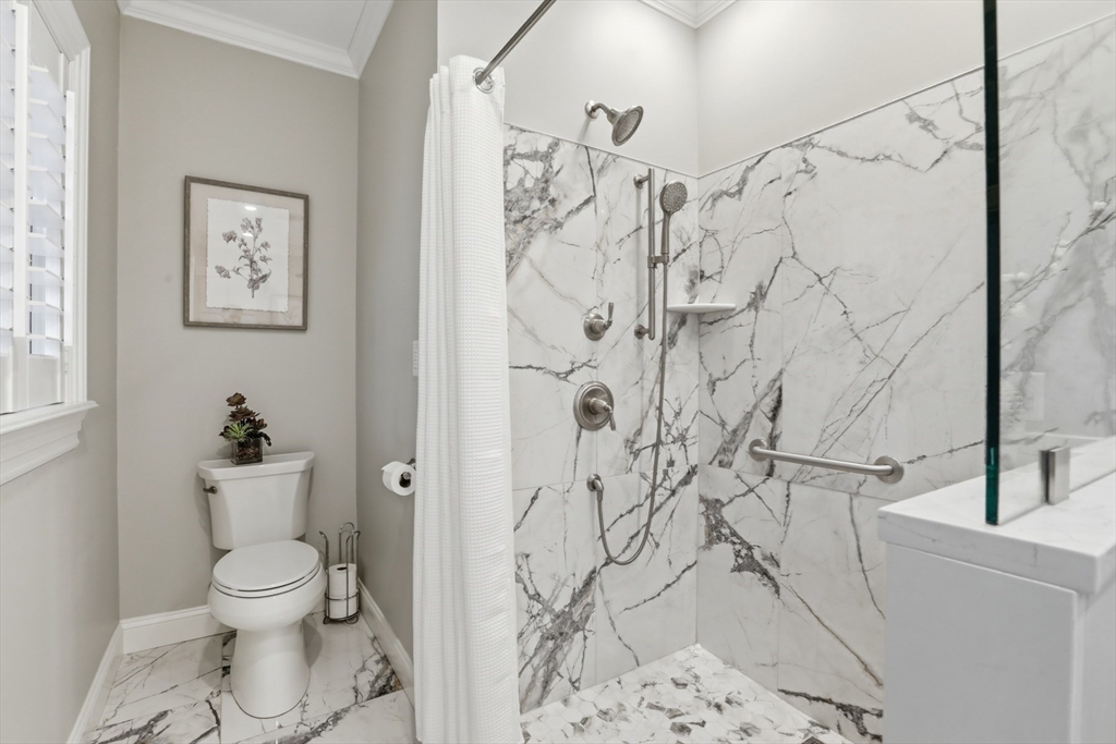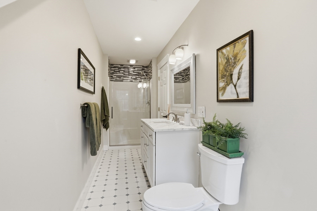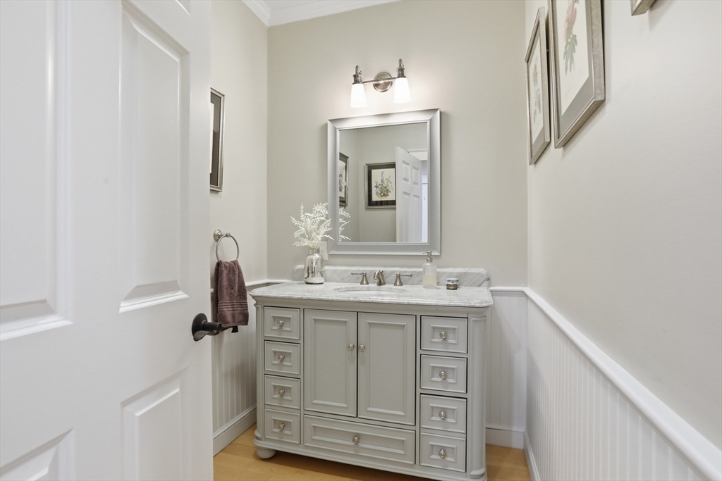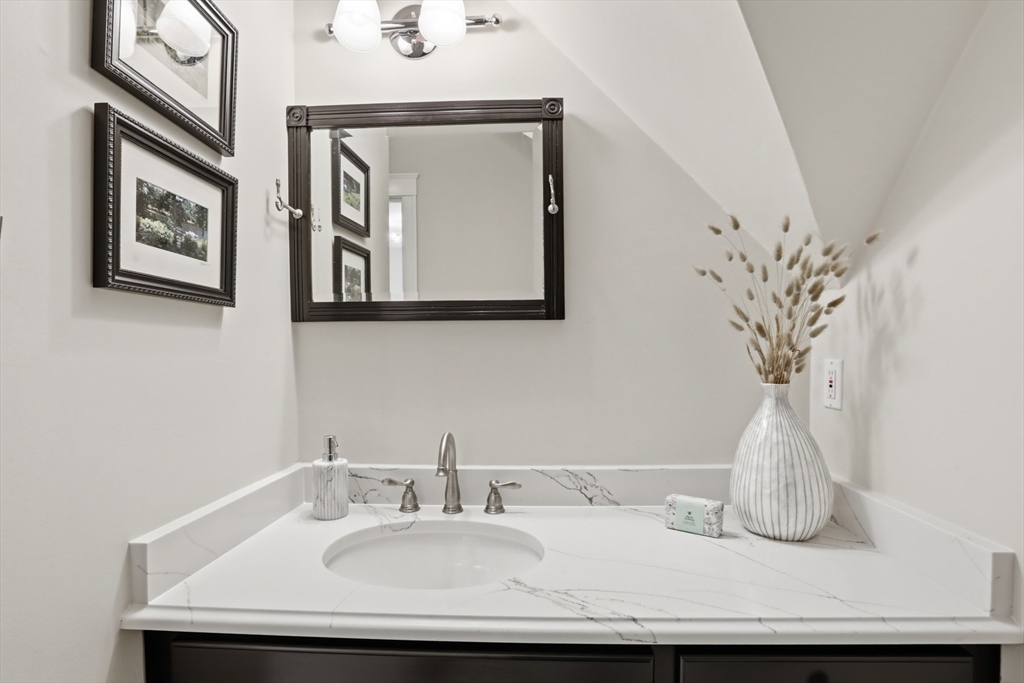 At the end of a quaint Newbury drive sits this exquisite Cape in a private, estate-like setting on just over three acres abutting conservation land. The beautifully designed grounds were created by one of Newburyport’s notable landscape designers, and the home was thoughtfully designed and crafted with exceptional attention to detail. The main level features an office or den, an expansive living room with a wood-burning fireplace, vaulted ceilings, exposed beams, and a wall of windows overlooking the gunite pool and terrace. A gracious dining room leads to a sunroom and a chef’s kitchen with custom white cabinetry, quartz counters, tile backsplash, and Thermador appliances. The first-floor primary suite offers a gas fireplace, soaring ceilings, walk-in closet, and spa-like bath. Upstairs are a second primary suite and two additional en-suite bedrooms. Three-bay garage, home gym, and ample storage. Ten minutes to downtown Newburyport, Plum Island beaches and under five minutes to Rt 95.