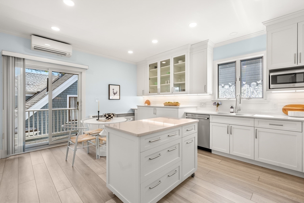 This top floor, sun-filled, floor-through 3BR+/2BA condo has been meticulously renovated and is in absolute move-in condition! Large designer eat-in kitchen features quartz countertops, custom maple cabinetry, stainless-steel appliances, and under-counter washer/dryer. Andersen slider leads to an expansive balcony - great for dining al fresco! Large living room with canted bay window is next to the dining room/family room, which can be converted to a 4th bedroom for overnight guests! All bedrooms are well-proportioned and feature California-like closet systems. Gleaming maple hardwoods, Harvey replacement windows & high ceilings throughout. Storage in basement. Low fees & low taxes plus 1 parking space in front of building. Pet-friendly association with 100% occupancy. Sought-after location: one block from Pierce Elementary and just blocks to Coolidge Corner, Brookline Village, Longwood Medical, C/D subway, Pierce Playground and Brookline High School.