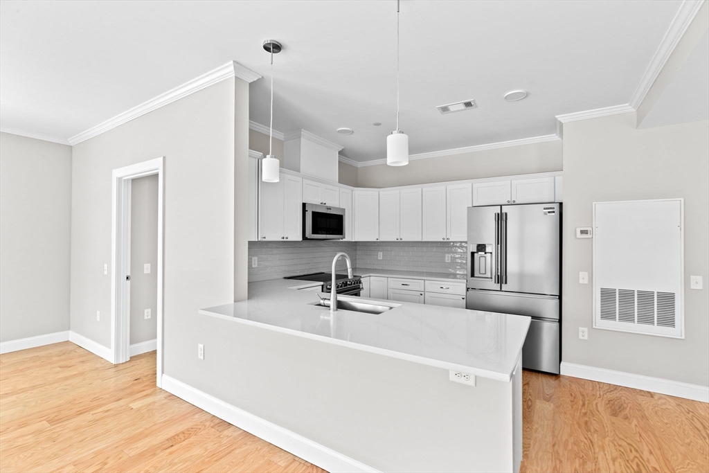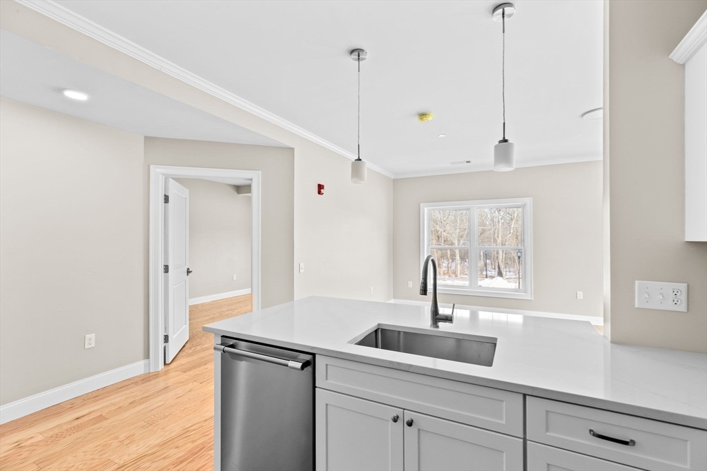 Introducing the newly constructed Icehouse on the Parkway Condominiums! This luxurious building boasts beautiful Quartz countertops, white shaker cabinets with stainless steel appliances. In-unit laundry with a Electrolux washer and dryer included. Generous-sized tiled bathrooms, custom designed closets, Hydro Air AC, and Navian energy-efficient tankless heat/hot water systems in every unit. The building features an elevator, fitness room, and comfortable common areas. Adjacent walking trails lead to the historic Popes Pond. The building pays homage to the once thriving ice harvesting businesses in the area (see attachment for a brief history). All units come with a designated storage space, and underground parking.
