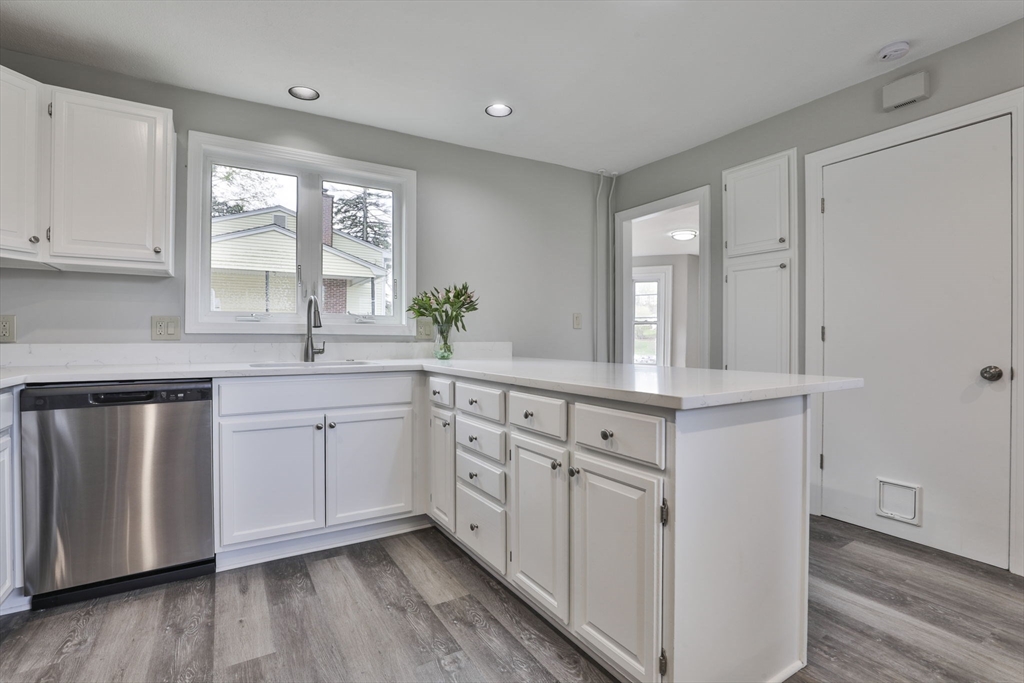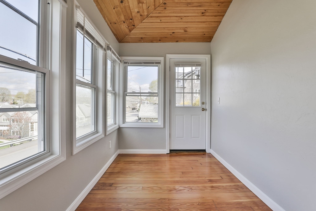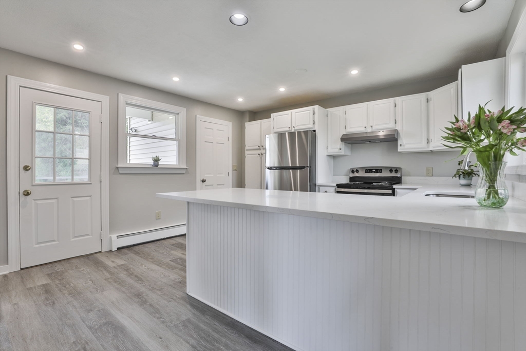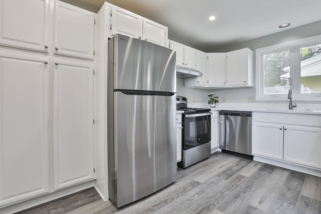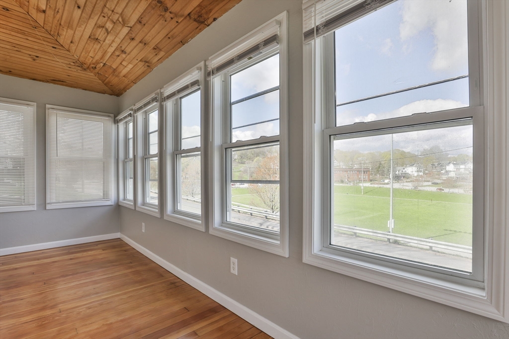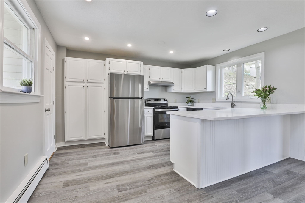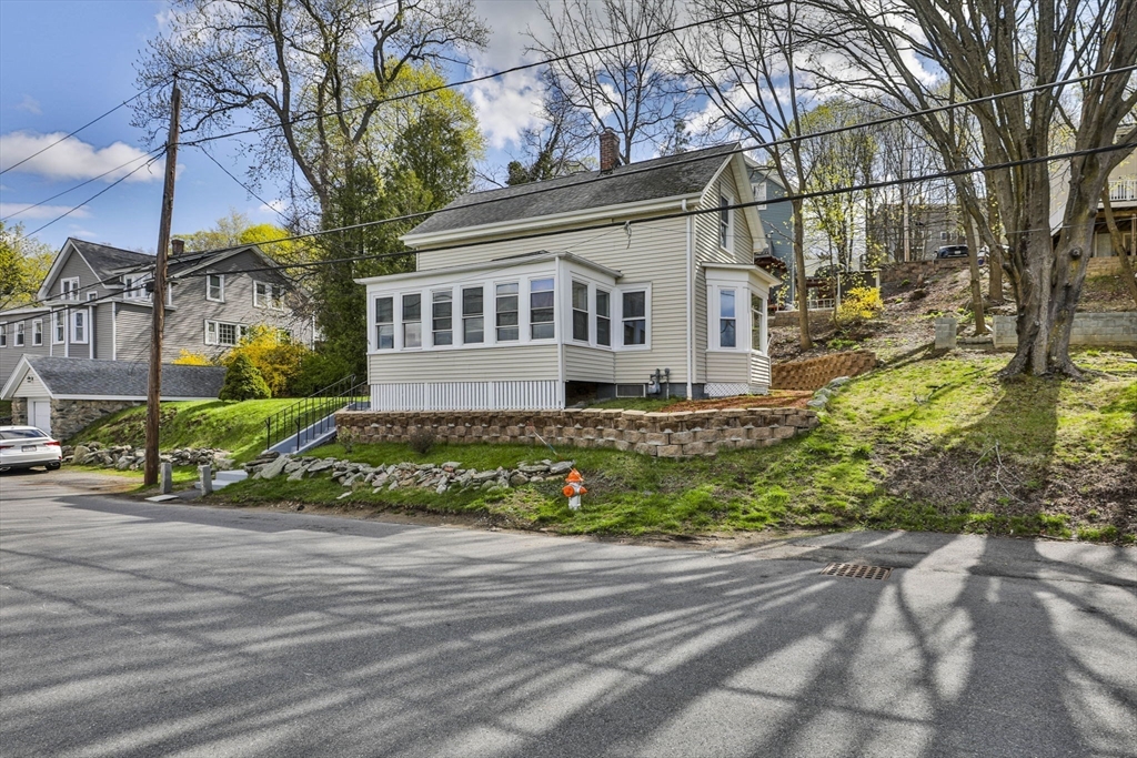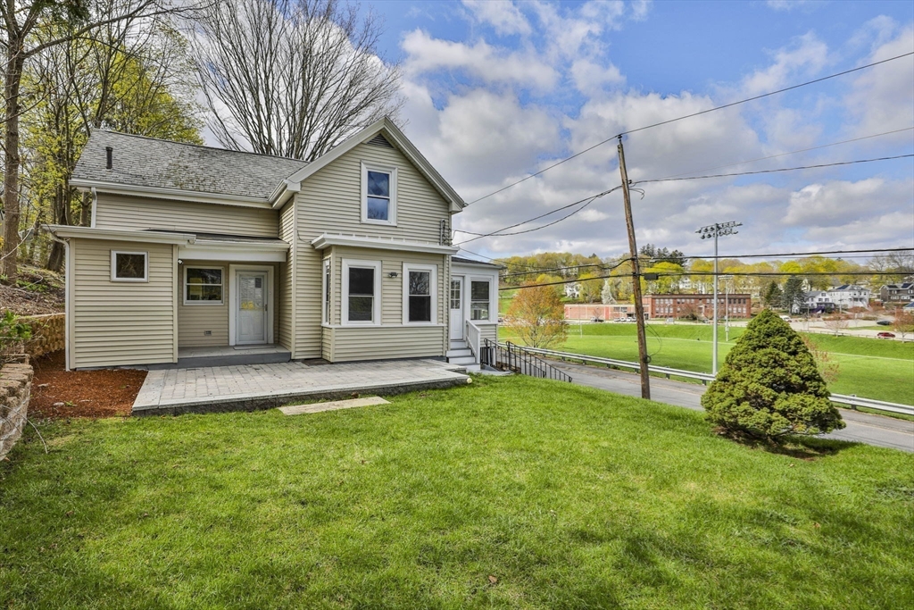 Charming three-bedroom Village Colonial ideally situated overlooking picturesque Ward Park! This move-in ready home has been thoughtfully updated with a brand-new kitchen, new bath, refinished hardwood floors, interior lighting, and fresh interior paint—simply unpack and enjoy. Highlights include a sun-filled enclosed front porch, a bay window that enhances natural light, and a built-in china cabinet that adds classic character. Step outside to a private patio looking out to a level, green lawn—perfect for relaxing or entertaining. A detached garage provides added convenience. Conveniently located within walking distance to downtown shops, restaurants, and the rail trail, this home offers both convenience and a scenic setting. A wonderful opportunity to own a turnkey home in a desirable location!