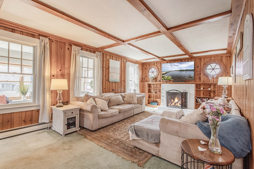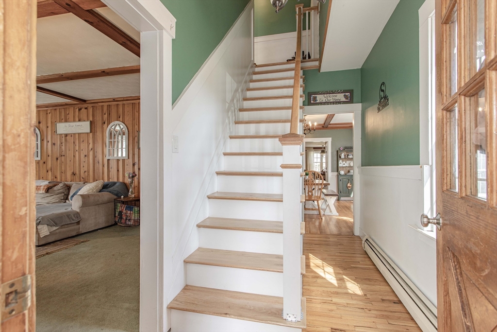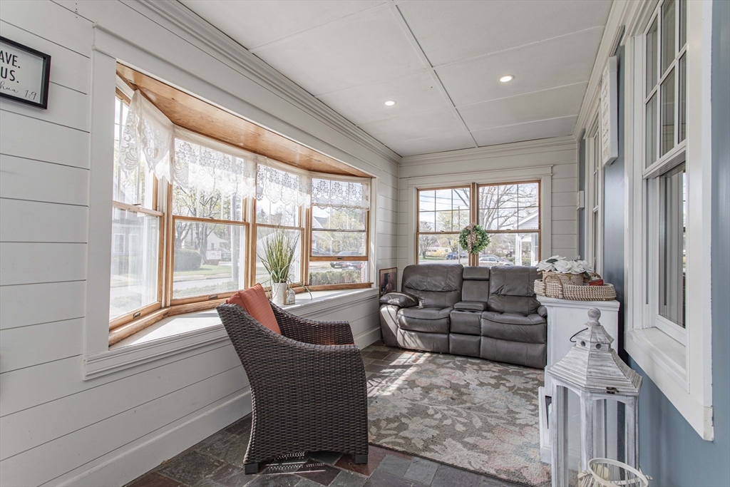 Welcome to this inviting 4-bedroom, 2-bath Colonial tucked away on a quiet side street just minutes from Whitman Center. Thoughtfully updated with a brand-new roof and new windows, this home offers a wonderful blend of classic charm and modern comfort. The eat-in kitchen and first-floor laundry provide everyday convenience, while the mudroom and four-season front porch offer great bonus space for today’s busy lifestyles. The living room features a cozy gas fireplace, and the spacious bonus room stands out with its vaulted ceiling and sliders that open to a private, fenced backyard—perfect for outdoor gatherings. The primary suite includes a beautifully updated bath with a walk-in shower and heated floors. A warm and welcoming home in a fantastic location, ready to be enjoyed for years to come. Please note: the home is being sold as-is for any unfinished upgrades or repairs.