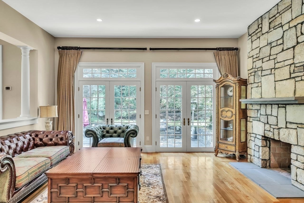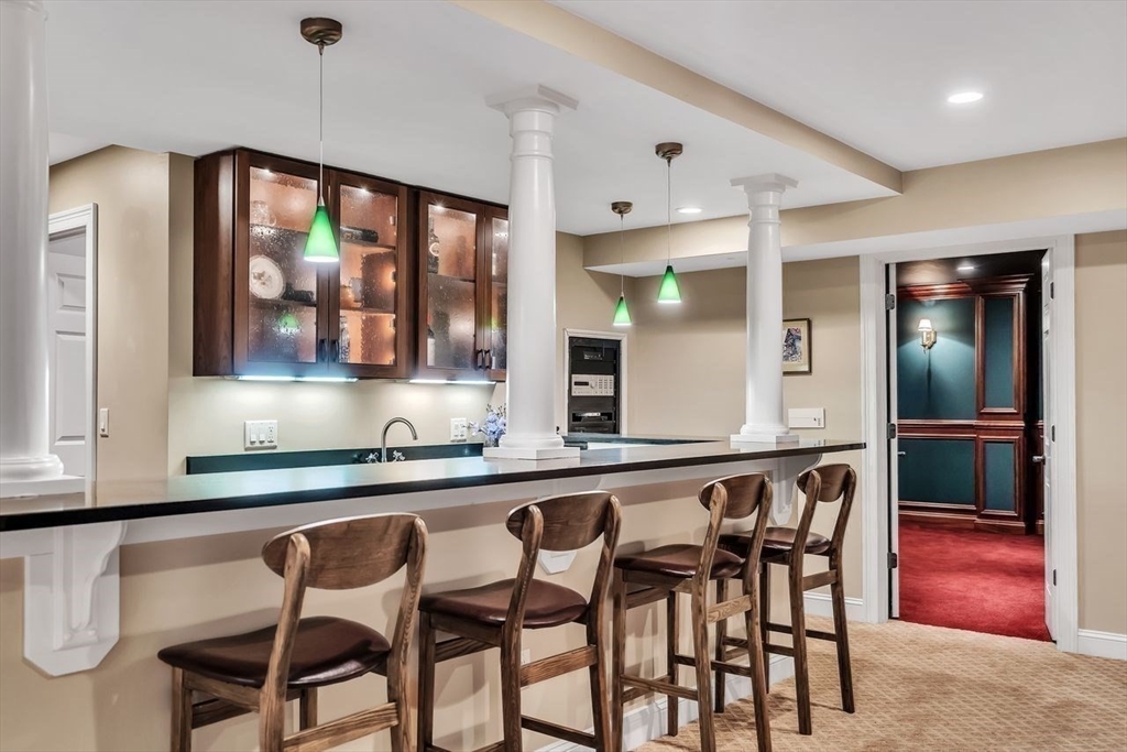 Gracious Shingle Style Mansion in coveted estate neighborhood is a rare combination of privacy and grandeur. With soaring ceilings and spanning over 8,800 square feet of living space, this house meets the desires of families, or entrepreneurial spirits with a love of larger homes. Beautifully crafted with custom details, millwork, moldings, and fine cabinetry throughout. A formal living room with stone fireplace and gorgeous dining room flanks a 2-story entrance hall. Further in a massive chef's kitchen flows effortlessly into the great family room, perfect for large gatherings and entertainment. A handsome library exudes sophistication. 5 bedrooms, 7 baths, a third-floor game room, and a lower level featuring an additional rec room, full bar, movie theater, and wine cellar complete the home. Privately sited on 2.65 acres and surrounded by stone walls with mature lush landscaping and gardens. An elegant Manor on one of the prettiest streets in Dover.