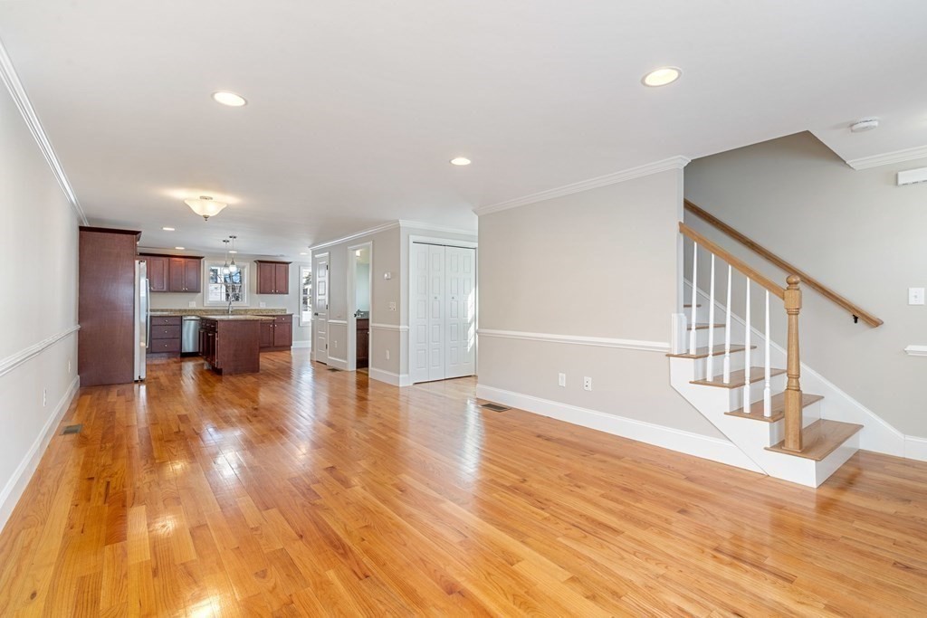This bright and meticulously maintained 2013 townhouse has the space of a single family home. With a large, open concept great room, it is easy to enjoy each other’s company and entertain with ease. The well-appointed kitchen, with stainless steel Bosch appliances, granite countertops and abundant counterspace, was thoughtfully designed. Bright and airy with gleaming hardwood floors throughout, it is a peaceful and relaxing sanctuary. The second floor has two ample-size bedrooms with custom closets, a full bathroom and generous office space. The primary suite encompasses the third floor – a vaulted ceilings and fireplace make this a quiet retreat. The primary bathroom has a double vanity with granite counters. In-unit laundry and huge lower-level storage are added conveniences. Enjoy a partially fenced private backyard and 2-car parking. Great proximity to the Waverly Square commuter rail station, 73 bus & Butler Elementary School. Easy access to Arsenal Yards, Cambridge & Boston.