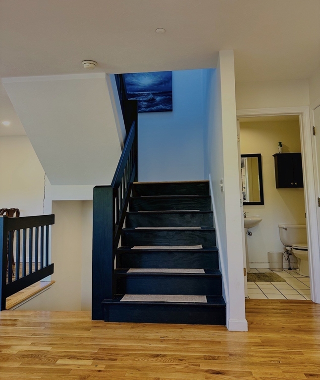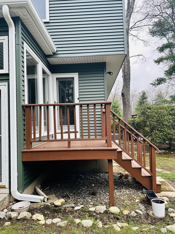 Beautiful 2BR/2.5BA townhouse with over 1,650 sq ft of living space, including a finished lower level Located in a desirable community within minutes of schools, shopping, restaurants, commuter train station, walking trails, Ashland State Park, and highway access. Features include a garage plus 2 off-street parking spaces, private yard, and spacious deck. Freshly painted with a new hot water tank (March 2026) and remote-control blinds in the living room, kitchen, and bedrooms. Open floor plan with high ceilings, large, sun-filled living room featuring multiple windows and a gas fireplace. Eat-in kitchen offers stainless steel appliances, ample cabinet space, large breakfast bar, and direct access to the backyard. Primary suite includes cathedral ceilings, fireplace, whirlpool tub, glass shower, and generous closet space. Second bedroom has its own full bath with tub and shower. Finished lower level includes separate laundry room.