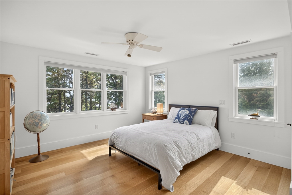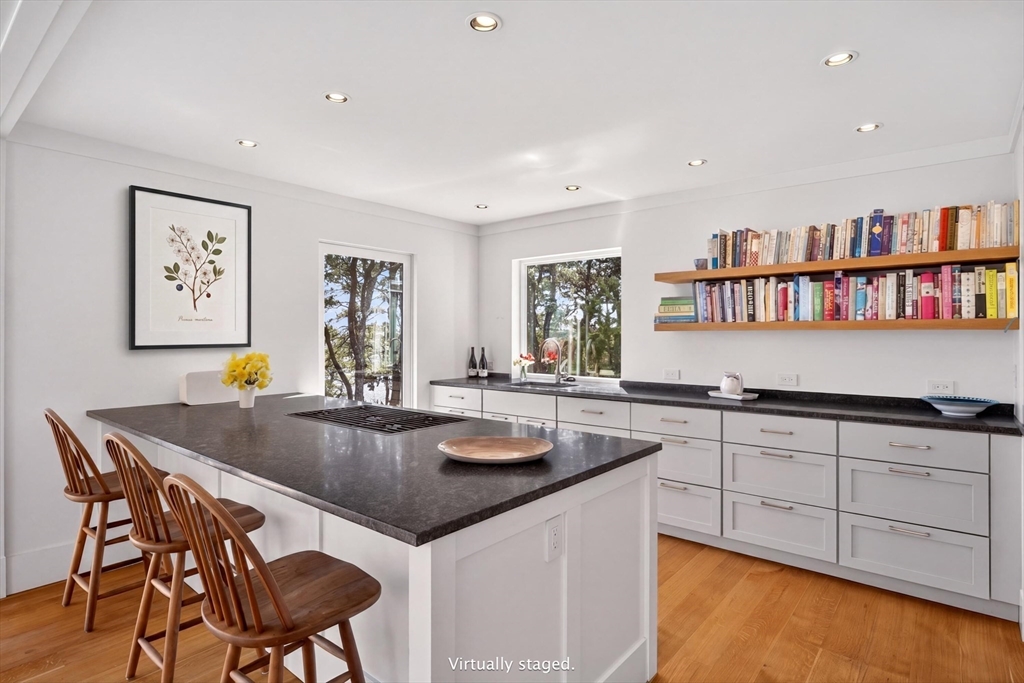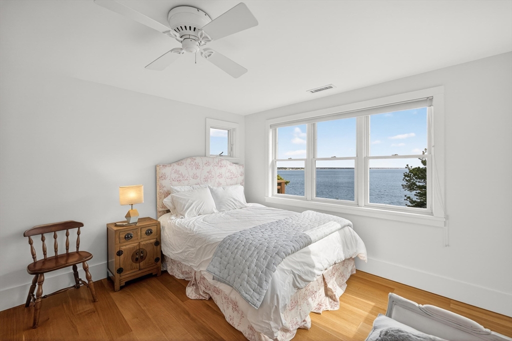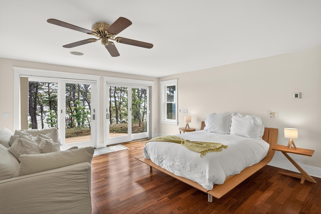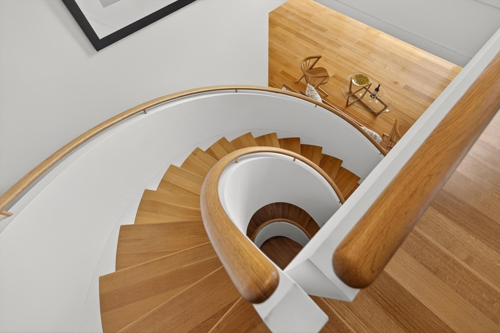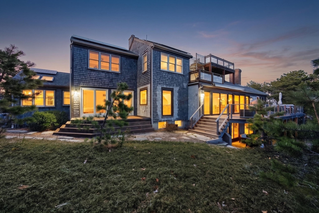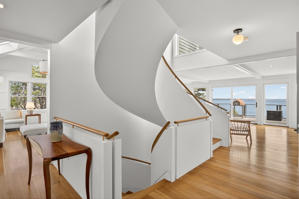 Set on a prime stretch of Wellfleet harbor this striking beachfront home distills the very best of Cape Cod living. Sweeping views carry across the harbor, into Cape Cod Bay, all the way to Orleans, a setting that shifts hour by hour as light moves across the water and closes each day with extraordinary sunsets. Inside, thoughtful updates meet standout design across multiple levels, anchored by a sculptural curved staircase that reads as much as art as architecture. An open living and dining area sits at the heart of the home. Multiple living areas and stunning water views extends from nearly every room. A screened porch invite easy indoor-outdoor living. Additional living quarters with a separate entrance and private bath offer flexible space, perfect for extended family, guests, or a home office. Private stairs lead directly to the beach below, while the marina, downtown Wellfleet, with its renowned restaurants and galleries are all just minutes away.