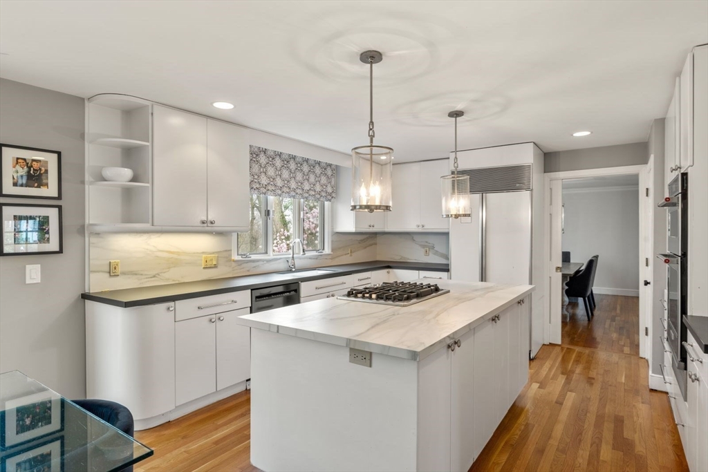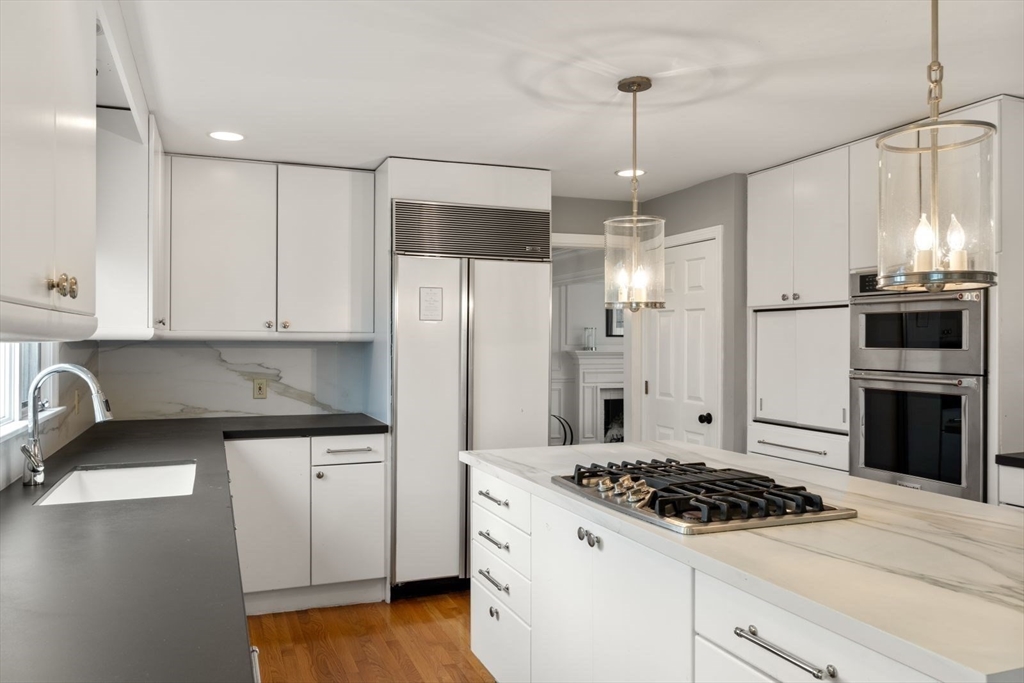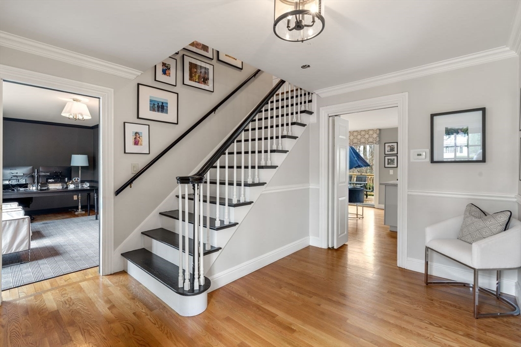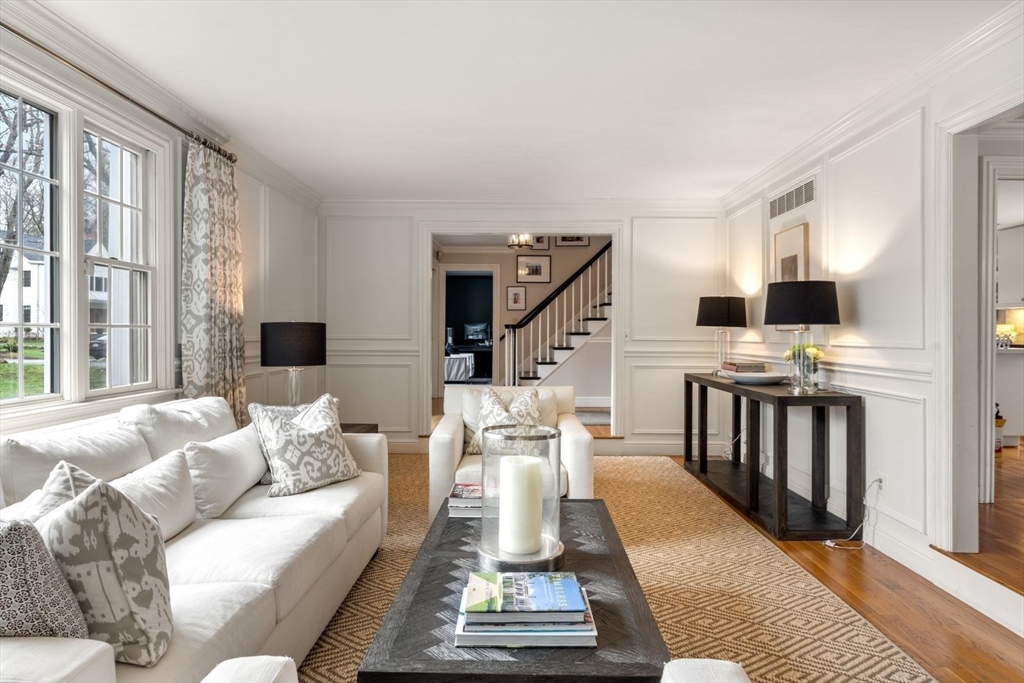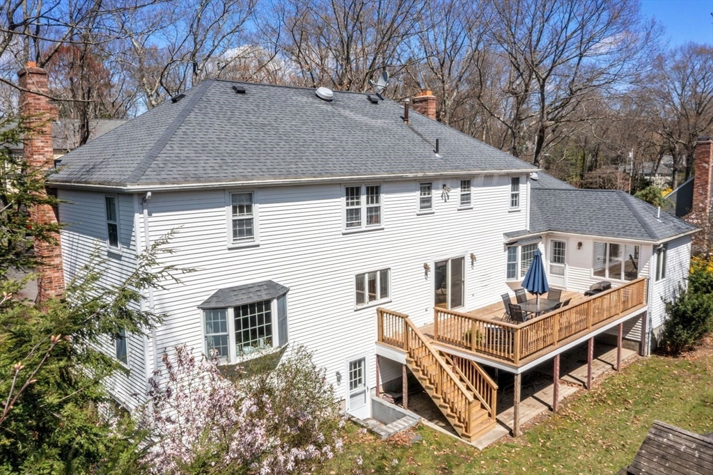 Located on one of Wellesley’s most coveted roads in Cliff Estates, 100 Albion is a beautifully appointed pillared white Colonial set on .77 acres of professionally landscaped grounds. Blending timeless architecture with modern living, the main level offers a gracious fireplaced living room with a large picture window, an elegant dining room, a private office, and an expansive kitchen centered around a large island. These spaces flow seamlessly into a spacious fireplaced family room with custom cabinetry and out to a brand-new deck ideal for indoor/outdoor entertaining. The first floor also includes a well-placed laundry room with a full bath. Upstairs are five bedrooms, including a serene primary suite with a walk-in closet, along with four additional bedrooms and two full baths. The finished walk-out lower level features a full bath and bar, providing versatile living space. Exceptional curb appeal, a circular driveway, and beautifully landscaped grounds complete this impressive home.