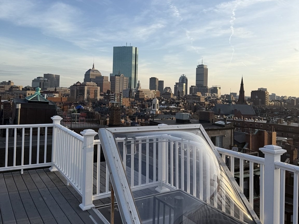 Penthouse living at its finest! This sun-drenched Beacon Hill unit features a beautifully renovated kitchen and a thoughtfully updated bathroom designed to maximize space and functionality. Enjoy hardwood floors throughout and an abundance of windows that flood the unit with natural light. Two nicely sized bedrooms offer flexibility for living or work-from-home space Step outside to your private roof deck with stunning 360-degree views of the city skyline and the Charles River. Additional highlights include deeded storage and convenient laundry in the building. In proximity to public transportation, Boston Public Garden, MGH and so much more!