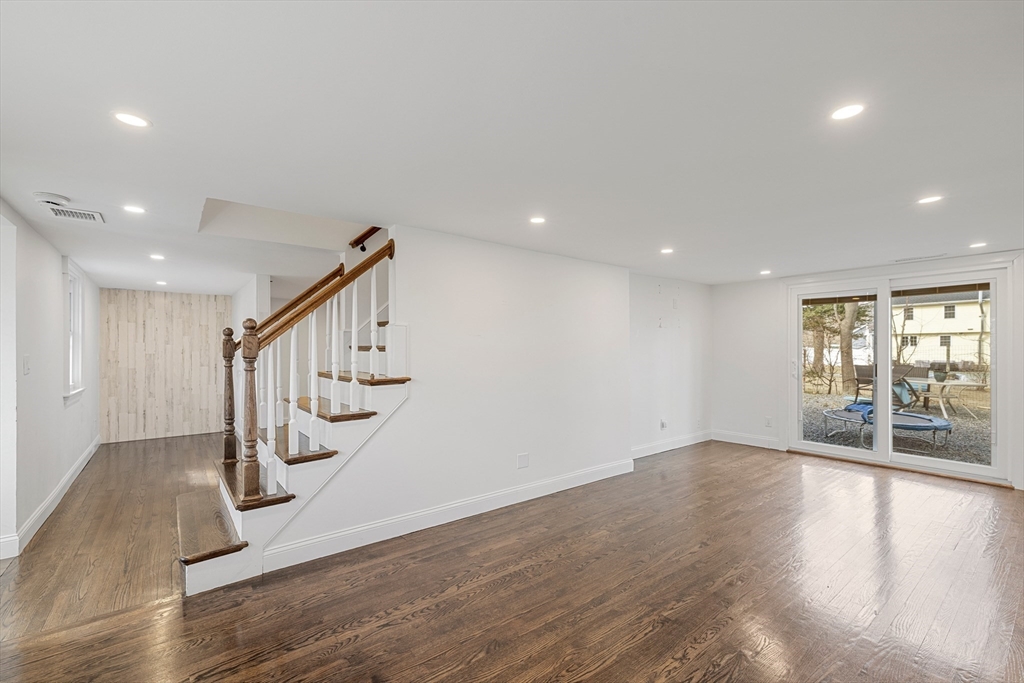 An updated two-bedroom attached home in Burlington is waiting for you. The first floor has a large back-to-front living room with a fireplace. A great kitchen with lots of storage along with room for a table. A full bath and a study/office nook. Upstairs are two bedrooms and an updated bath with laundry. Hardwood floors throughout. Parking for two cars, including 1 garage space, and a shared backyard. All of this is in a great location with easy access to the highway. 1 utility bill to be split equally between 2 units. Internet and snow removal tenant responsibility.