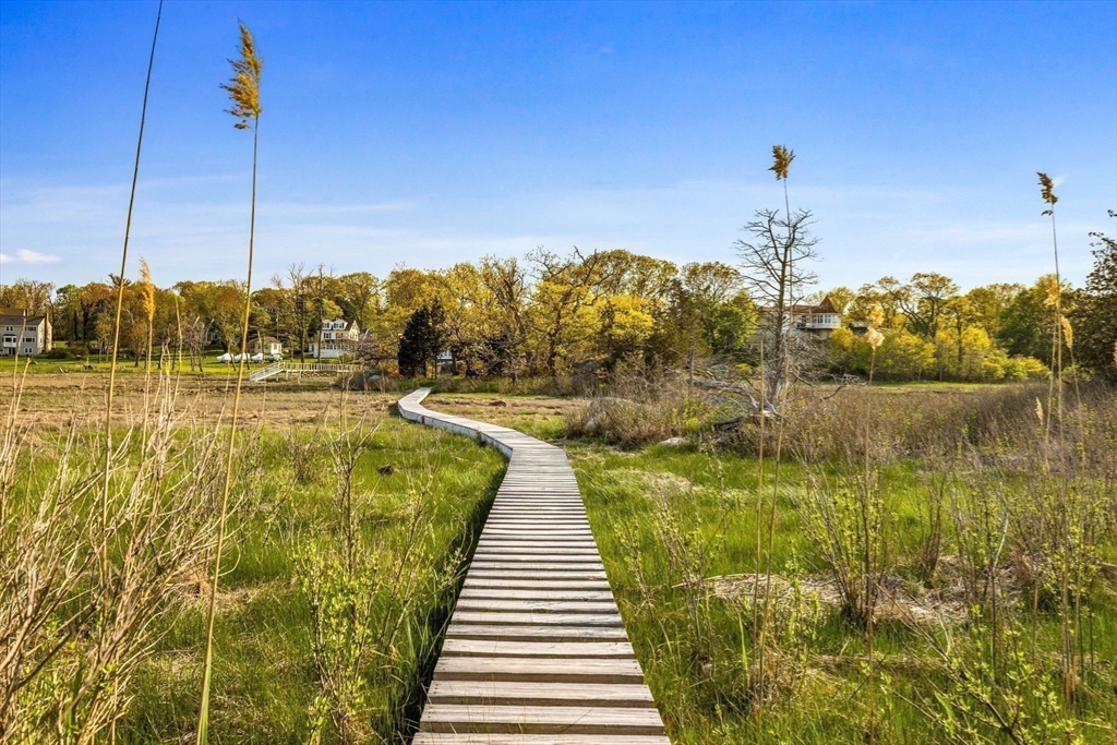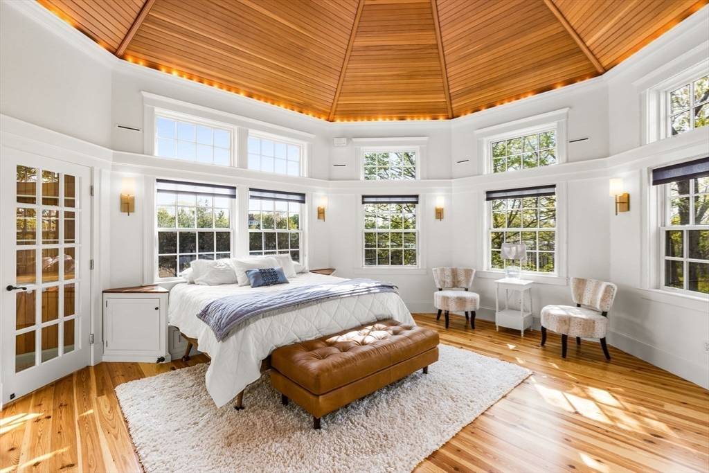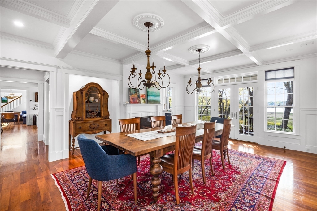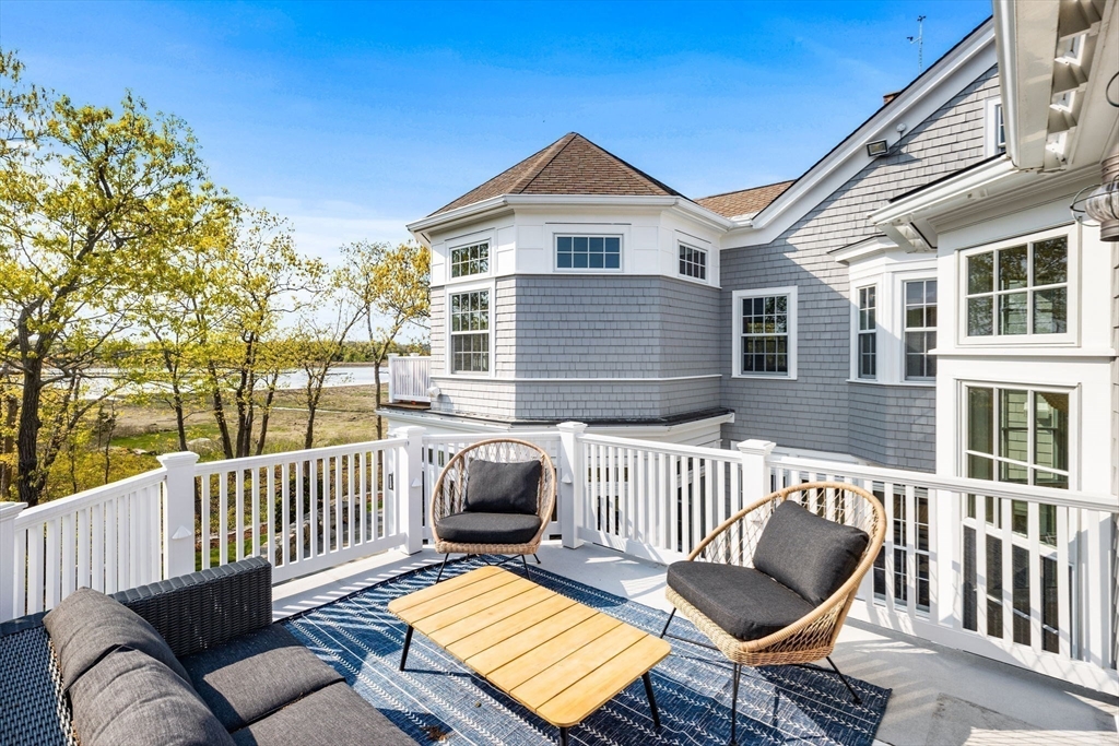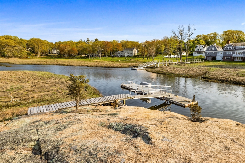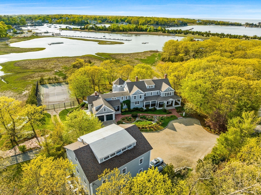 Set at the quiet edge of Cohasset Harbor, this shingle-style home offers rare privacy on elevated land surrounded by 20 acres of salt marsh & woodland with sweeping harbor views. Meandering boardwalks lead to small islands, including one with a tidal dock for direct water access. Designed by Sally Weston & fully renovated, the home blends timeless architecture with modern comfort. A dramatic 2 story foyer opens to formal living & dining rooms each with fireplaces. The kitchen features a large island, baking room & banquette seating, flowing into a family room & sunroom filled with natural light. First-floor spaces include a unique octagonal bedroom, mudroom & potting kitchen. Upstairs the primary suite offers a private sitting area & spa-like bath, alongside 3 bedrooms, a loft office & a deck overlooking the harbor. 3rd floor suite adds more living space. Amenities include tennis & bocce courts plus a barn perfect for boat storage, a car collection, indoor sports court & 1 bedroom apt.