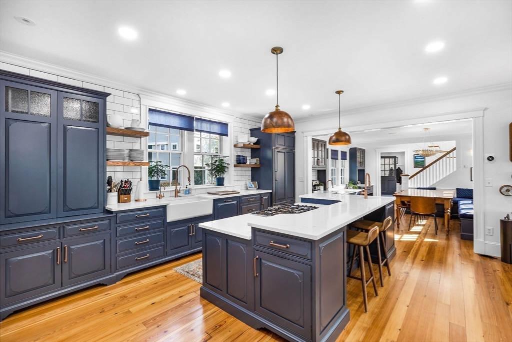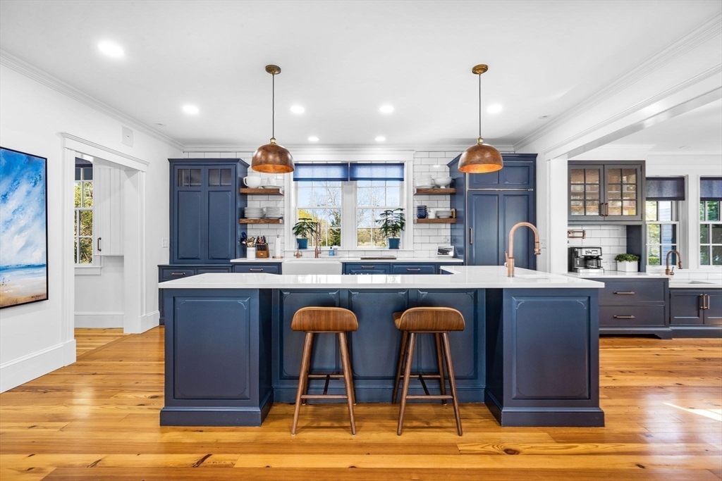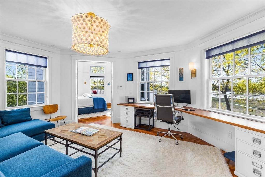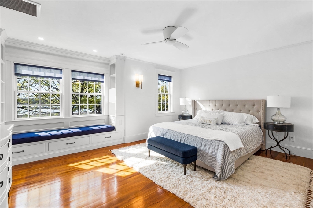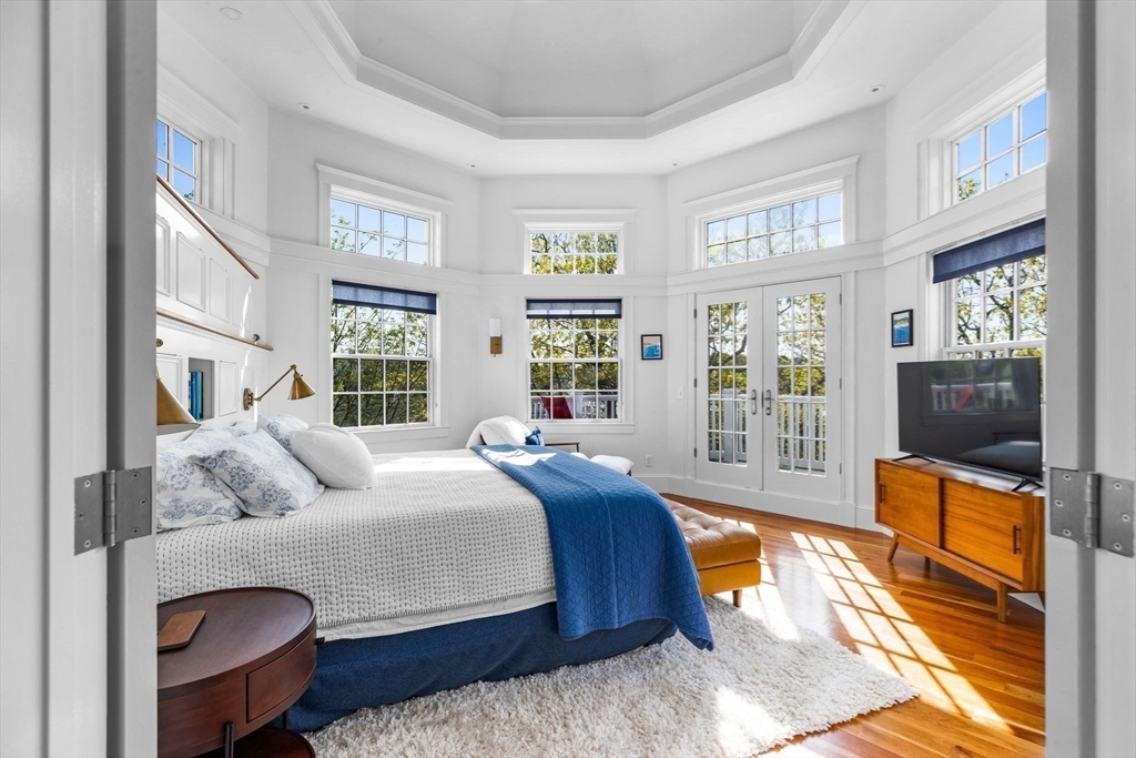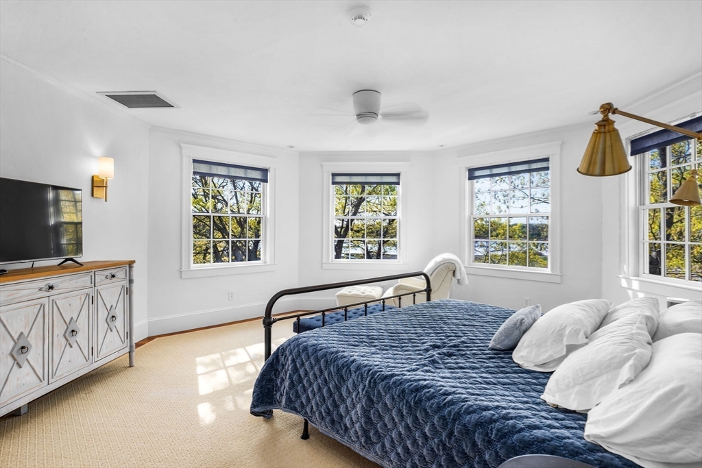 Set at the quiet edge of Cohasset Harbor, this shingle-style home offers rare privacy on elevated land surrounded by 20 acres of salt marsh & woodland with sweeping harbor views. Meandering boardwalks lead to small islands, including one with a tidal dock for direct water access. Designed by Sally Weston & fully renovated, the home blends timeless architecture with modern comfort. A dramatic 2 story foyer opens to formal living & dining rooms each with fireplaces. The kitchen features a large island, baking room & banquette seating, flowing into a family room & sunroom filled with natural light. First-floor spaces include a unique octagonal bedroom, mudroom & potting kitchen. Upstairs the primary suite offers a private sitting area & spa-like bath, alongside 3 bedrooms, a loft office & a deck overlooking the harbor. 3rd floor suite adds more living space. Amenities include tennis & bocce courts plus a barn perfect for boat storage, a car collection, indoor sports court & 1 bedroom apt.