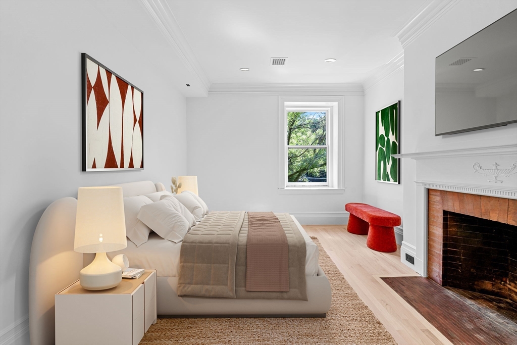Step into timeless elegance with this gut renovation, furnished 2 bedroom is nestled in one of Brookline's most stunning historic mansions. This residence seamlessly blends classic charm with modern convenience, offering a unique opportunity to experience luxurious living. The property is fully furnished with modern, high-end furniture, offering design/ style. Upon entering the main level, you’ll be greeted by a light-filled living area featuring high ceilings, rich hardwood floors & intricate original moldings. The kitchen is minimalist design, boasting sleek countertops, shelves for storage, top-of-the-line stainless steel appliances, and custom cabinetry. Upstairs you will find the two generously sized bedrooms. The bathroom features contemporary fixtures, gorgeous white luxury marble shower & vanity. To top it off- a private, exclusive garden patio &1 parking space are included.