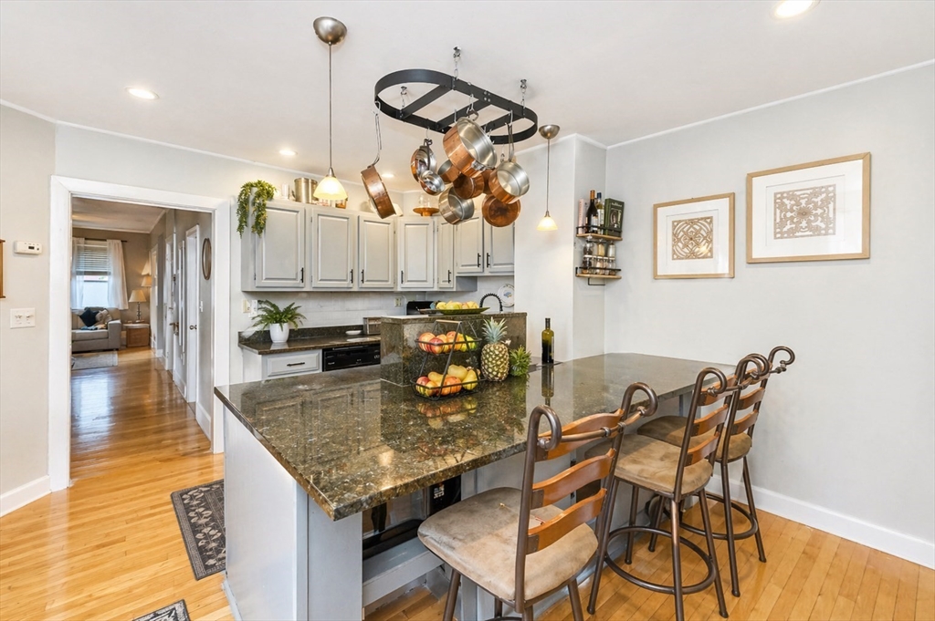 Beautifully updated bi-level unit offering 2 bedrooms plus 2 versatile office spaces and 1 full bath. This sun-filled home features hardwood floors throughout, an updated kitchen with granite countertops and a center island, and the convenience of in-unit washer/dryer. Enjoy seamless indoor-outdoor living with a private walk-out roof deck—perfect for relaxing or entertaining.