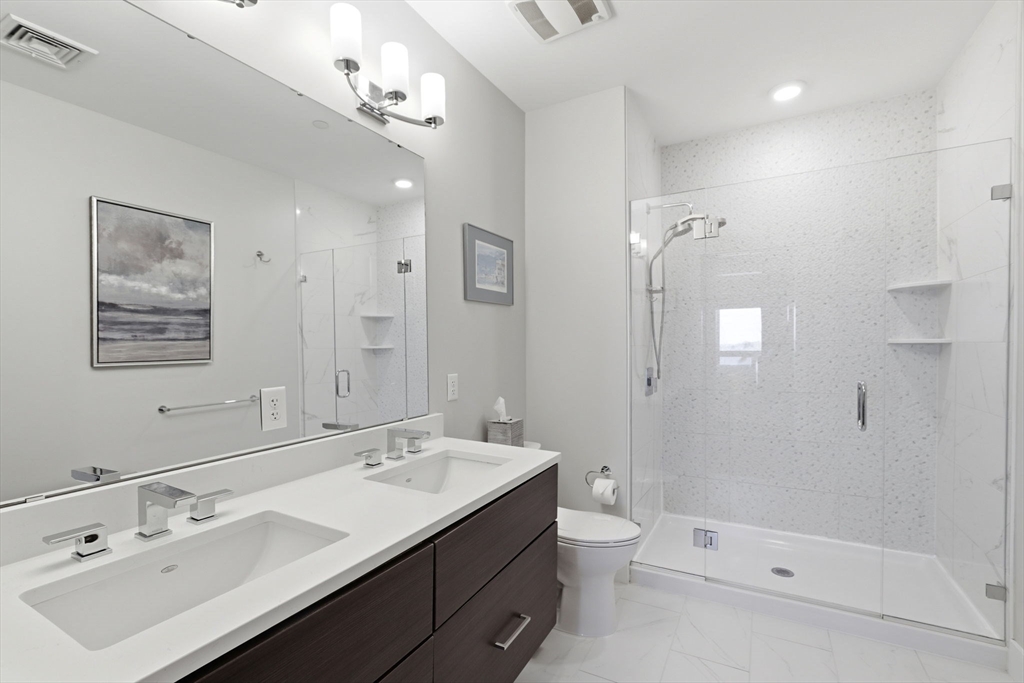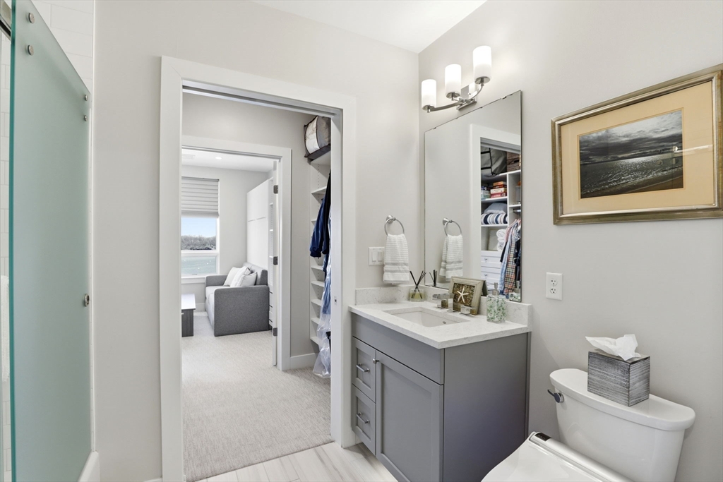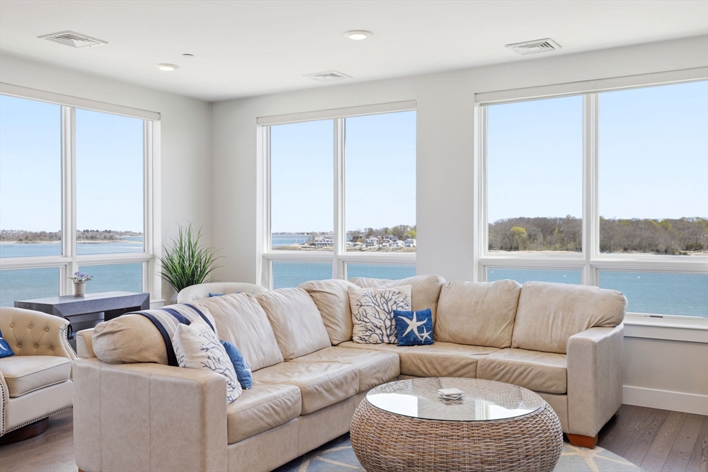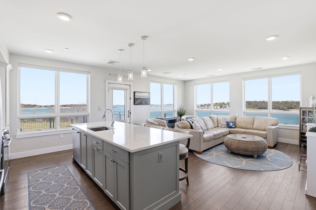 Discover this STUNNING Corner 2 BR unit offering breathtaking water views from every room ! Spectacular water views from oversized windows that flood the living area with natural light and showcase breathtaking water vistas. Numerous upgrades throughout! Modern top-of-the-line finishes include hardwood floors, a sleek kitchen open w/ a 10 foot island w/quartz countertops, stainless Bosc appliances, painted cabinets & large pantry cabinet. Step onto your private balcony to take in the views, relax, unwind or entertain. Located in a peaceful, private setting amidst 10 acres of lush open space & bordering Webb Memorial Park w/ walking trails with direct waterfront access. Just minutes from Hingham Shipyard, residents at Seascape enjoy convenient proximity to retail shops, dining options, and a movie theater. Amenities include a stylish club room & outdoor stone patio w/ furniture, a gas fireplace, grills & dining area. Private garage w/additional storage!