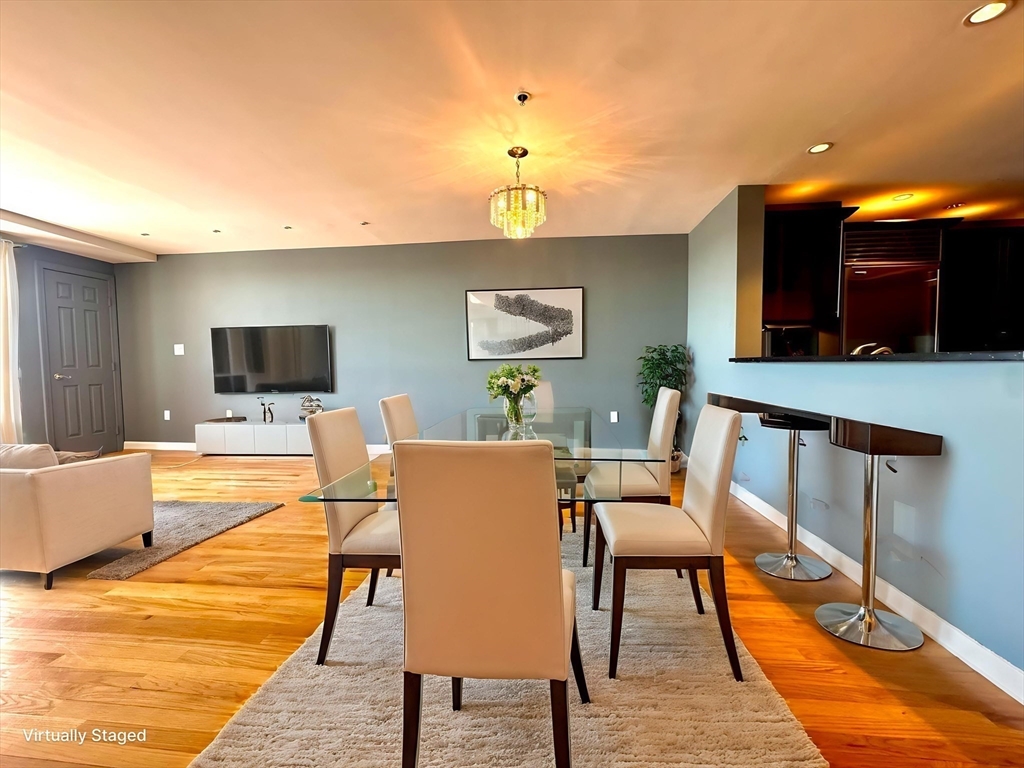 ****HOA includes all utilities except electric/cable***Ocean Front Luxury Living at its BEST!!! This is a One of a Kind 1 Bed 1 Bath Unit in the St George Condominium Complex offering Exceptional Views of the Ocean During the Day and BOSTON SKYLINE at Night. This Unit Has Been Totally Renovated Offering HW Floors Throughout, Quartz Kitchen Counters/and Floors, Oversized Drop-In Kitchen Sink, Sparkling Quartz Bar/Breakfast Nook, Sub Zero Refrigerator, Thermador Oven and Stove Top, High End Microwave with Convection Oven w/ Built-in Warming Tray, Jen Air Dishwasher, Kraft Made Cherry Kitchen Cabinets with Crown Molding, Extra Den/Office with Custom Built-In Alcove Desk, Custom Recessed Remote Control Lighting, and In-Unit Laundry Room w/ Washer and Dryer. Bedroom Offers Huge Walk-In Closet, High End Built in California Style Closet with Built in Dresser, and A Whole Wall Full of Windows Overlooking the Ocean and Boston Skyline from Both the Bedroom and Your Private Balcony.
