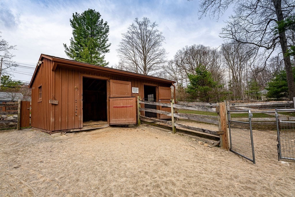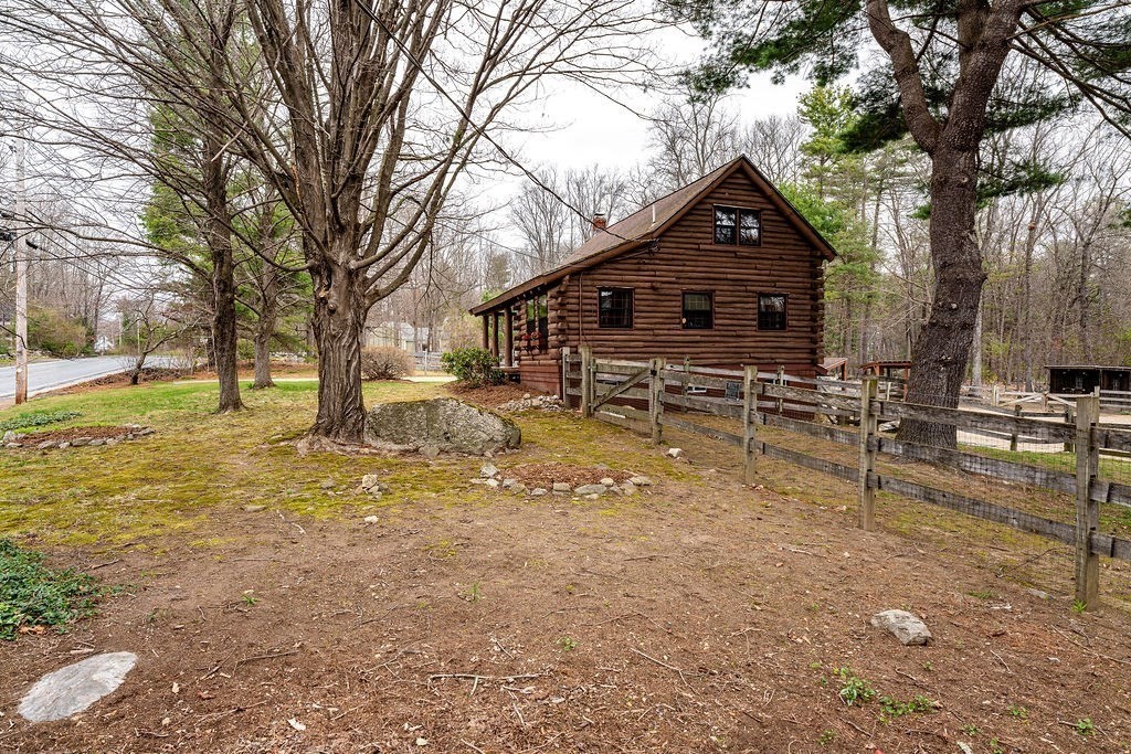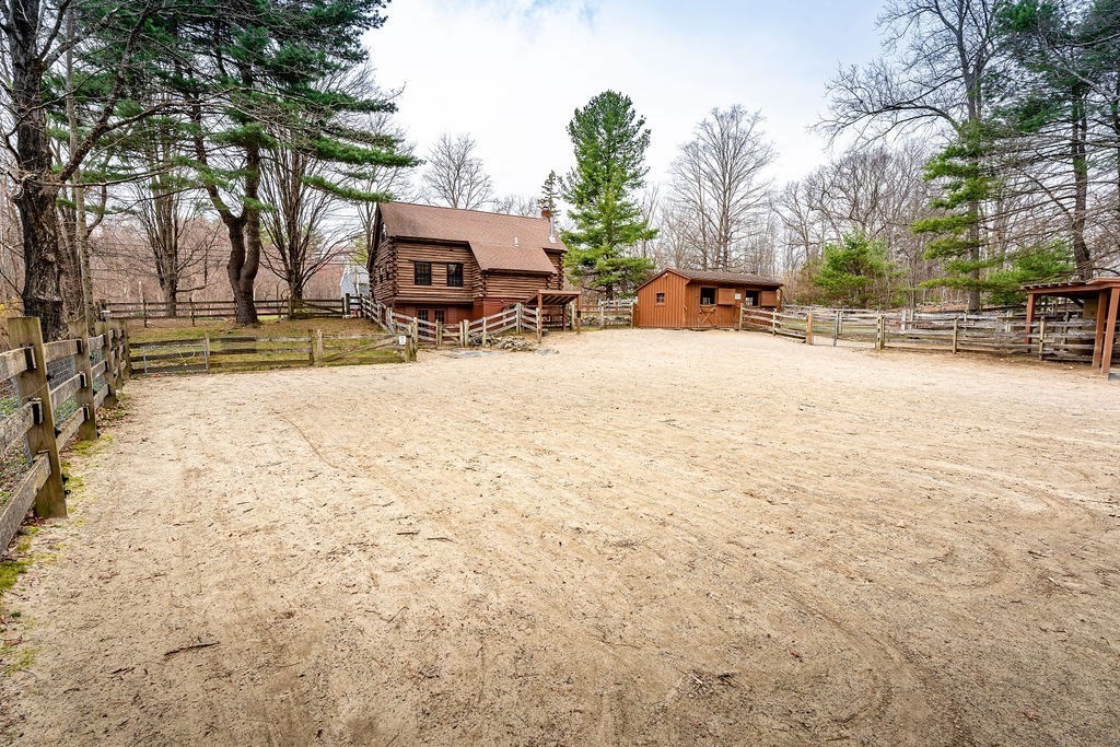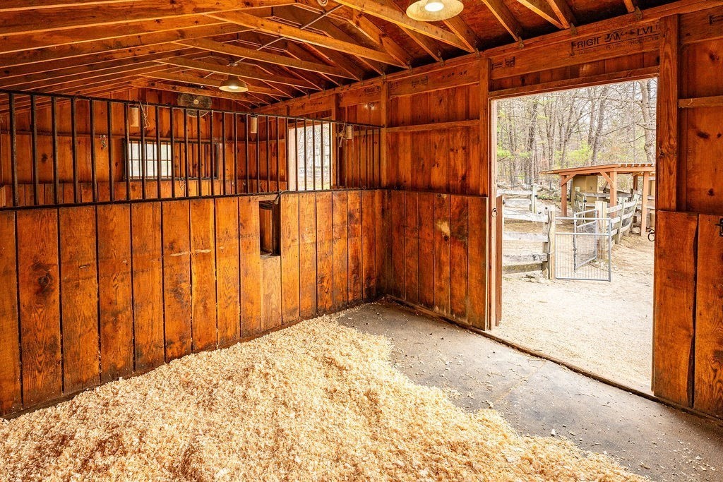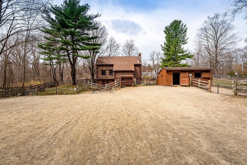 Nestled in the sought-after town of Boxboro, this stunning log cabin equine property is thoughtfully designed, beautifully maintained, and ready for you and your horses. A warm 2-bed, 1-bath log cabin is cozy, character-filled, and built for real life. Exposed wood, natural light, and quality craftsmanship create a space that wraps around you the moment you walk through the door. A bonus upper-level room offers flexible space for a home office or sitting room which is perfect for morning coffee with a view of the paddocks. Every square foot of this property has been laid out with an equestrian eye. The barn features 2 stalls plus in-and-out stall access, giving horses the freedom to move on their own terms. Two additional paddocks offer turnout flexibility, automatic hay feeders keep daily chores streamlined, and two sheds provide ample storage for hay and equipment. A second driveway makes hauling in and out effortless. Miles of conservation trails sit directly across the street.