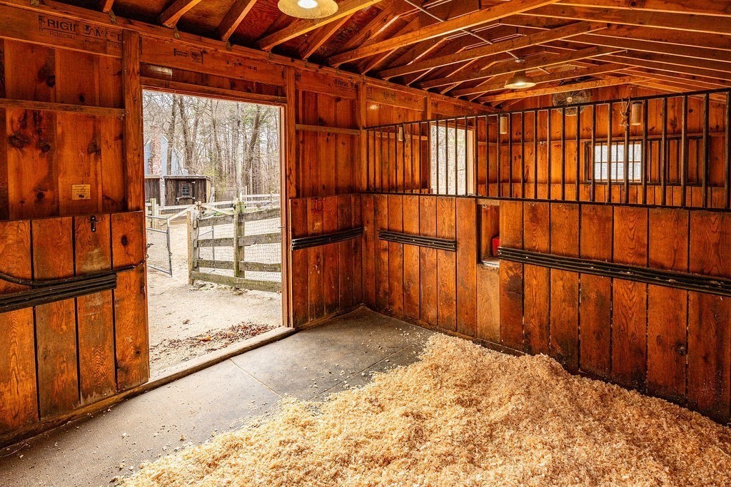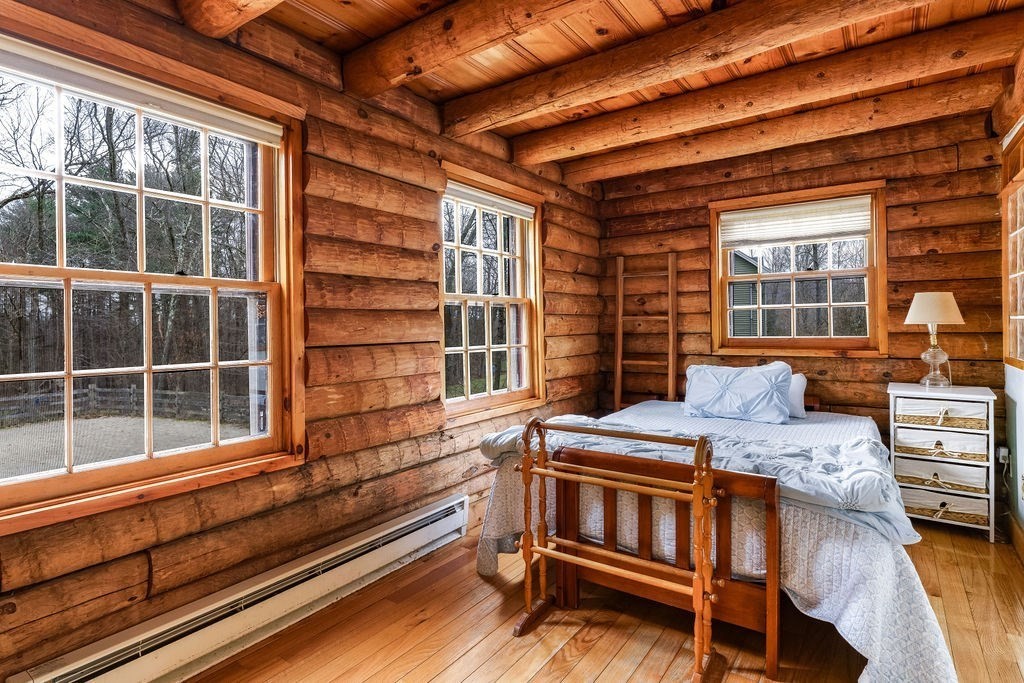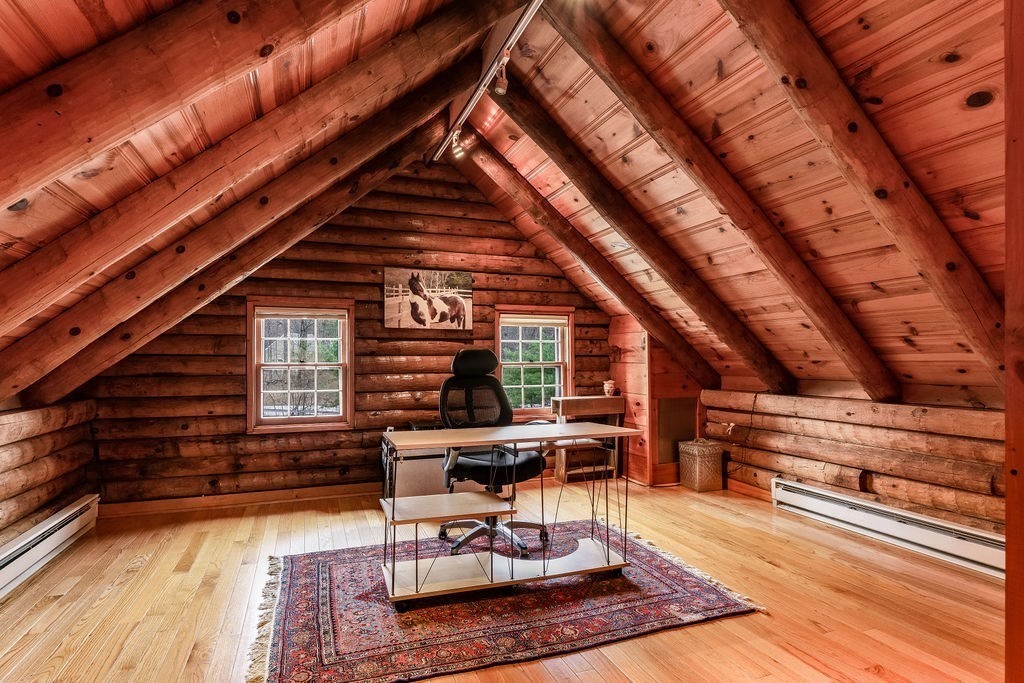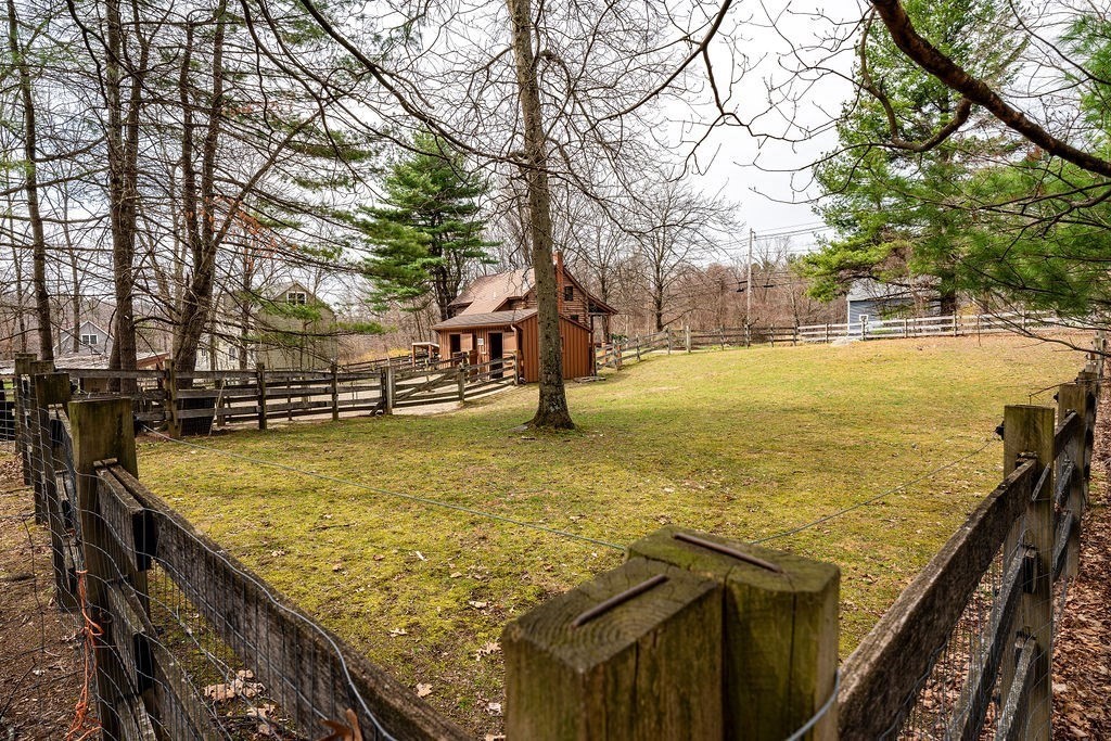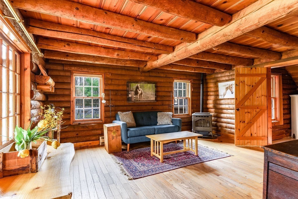 Nestled in the sought-after town of Boxboro, this stunning log cabin equine property is thoughtfully designed, beautifully maintained, and ready for you and your horses. A warm 2-bed, 1-bath log cabin is cozy, character-filled, and built for real life. Exposed wood, natural light, and quality craftsmanship create a space that wraps around you the moment you walk through the door. A bonus upper-level room offers flexible space for a home office or sitting room which is perfect for morning coffee with a view of the paddocks. Every square foot of this property has been laid out with an equestrian eye. The barn features 2 stalls plus in-and-out stall access, giving horses the freedom to move on their own terms. Two additional paddocks offer turnout flexibility, automatic hay feeders keep daily chores streamlined, and two sheds provide ample storage for hay and equipment. A second driveway makes hauling in and out effortless. Miles of conservation trails sit directly across the street.