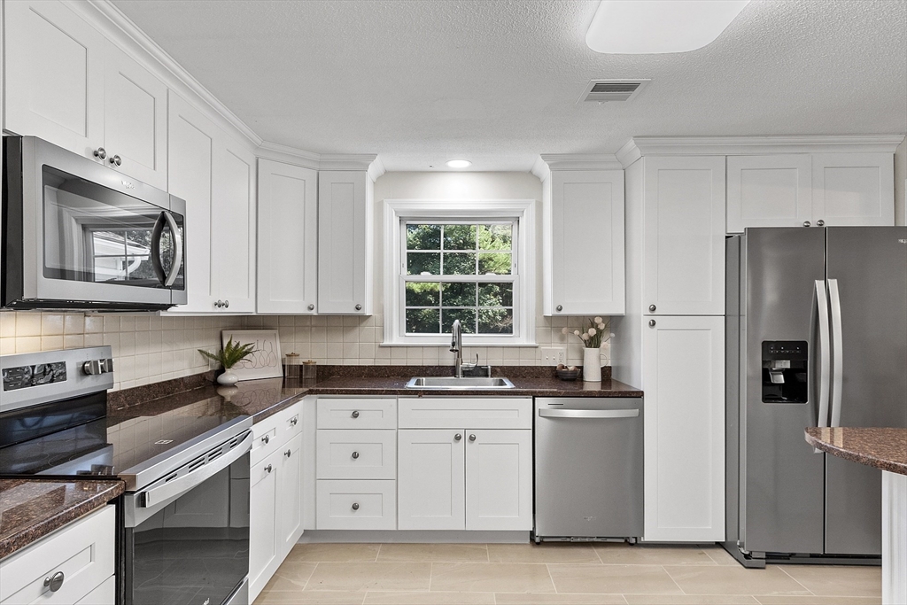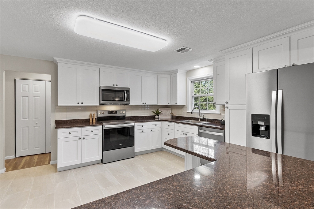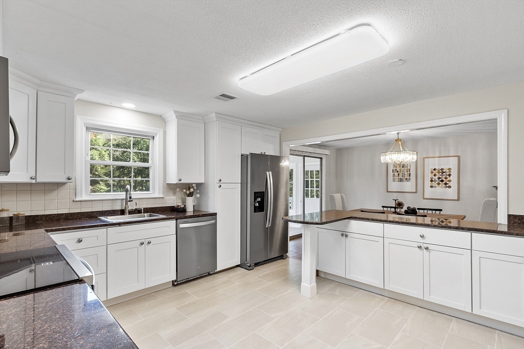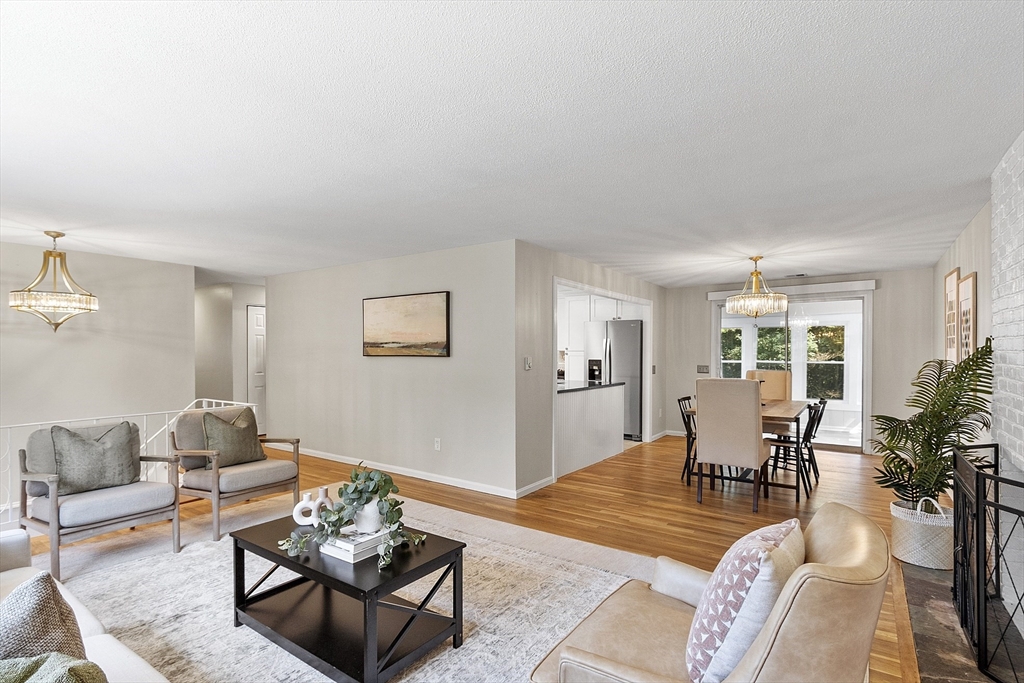 Avail 5/1/26. No students. Spacious SF near Southboro line offering comfort, flexibility & convenience. New paint. Refinished floors. Bright living room w/ pellet stove & picture window. Dining room w/ sliders to sun room & deck. Updated kitchen w/ NEW SS stove, DW, & refrigerator, NEW cabinets & peninsula. Big primary bedroom w/ en suite bath. 2nd & 3rd bedrooms w/ mirrored closets. Newer full bath on main level. Big family room w/ fireplace & pellet stove. Huge 4th bed w/ oversized walk in closet/dressing room/storage. Full bath w/ tiled shower. Newer washer/dryer units. Interior access to 2 car garage plus storage. NEW heat pump for central heat & AC. Exterior access to patio/backyard. Tree-lined lot. Tenant responsible for all utilities including water, snow & grass. 1 pet ok w/ 1st, last & sec dep. Sanofi, Bose & Staples mins away. Easy access to rts 9/30/90. Framingham commuter station near by. Convenient to major shopping centers & restaurants. Close to Framingham Country Club.