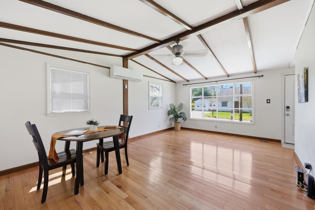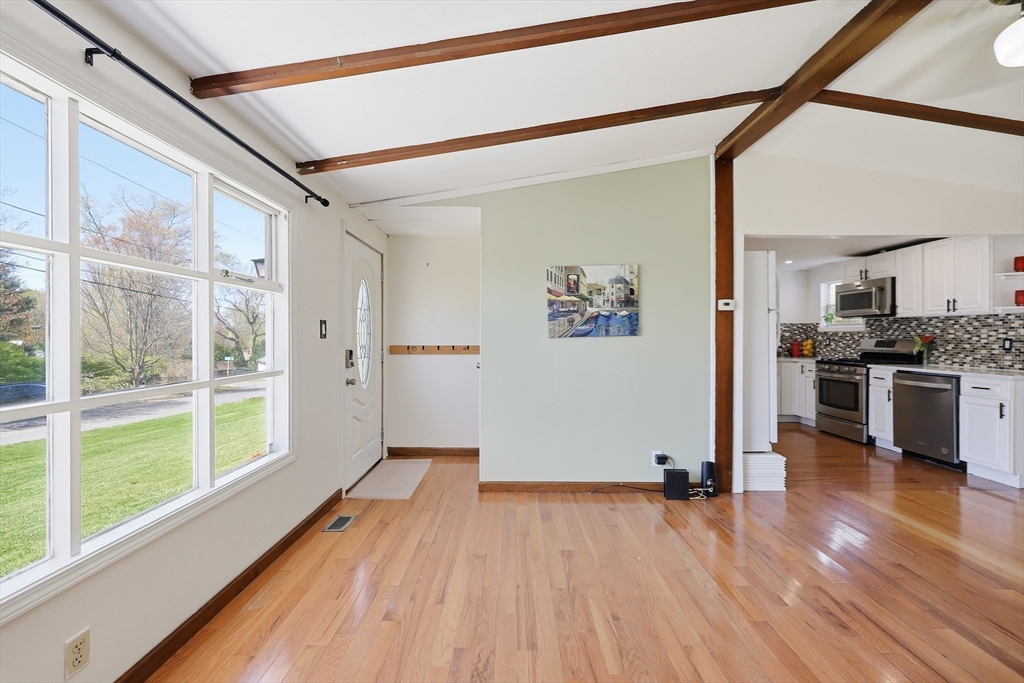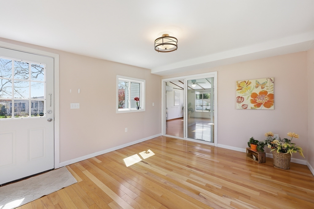 Charming Ranch in a sought-after, quiet, and convenient neighborhood—perfectly nestled close to all amenities with effortless access to every area! This bright, cheerful home welcomes you with a beautifully refreshed kitchen and generous dining space that opens to a graceful living/dining area under cathedral ceilings. Modern bath offers comfort and style. A spacious sunroom leads to the rear deck—ideal for entertaining or peaceful morning reflection. The impressive finished recreation room provides wonderful space for hobbies or game nights. Detached garage adds convenience for your vehicle and storage as well as a shed.. Efficient gas heat plus solar savings enhance everyday comfort. Rare opportunity in this lovely area—act quickly to make this inviting home yours!