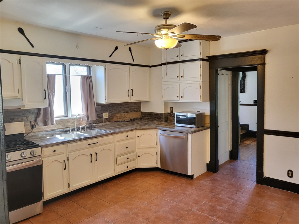 This Craftsman Style 3 Bedroom single family offers architectural details of its time: a large front porch, hardwood flooring throughout, a centered fireplace in the living room, French doors that open to the dinning area, built in china cabinet, side by side window with seating space allowing daylight in for a natural feel. The spacious kitchen with a pantry room, ceramic tile flooring leads to a small porch in the back, a nice size backyard, 2 car garage with a loft above, and a large driveway. The 2nd floor offers 3 nice size bedrooms with some vinyl windows, built in storage and a full tiled bath renovated in 2021. Laundry is located in the basement, and has a bonus full bath.Highest & Best Offer due by Friday, MAY 1st @ 12:00PM
