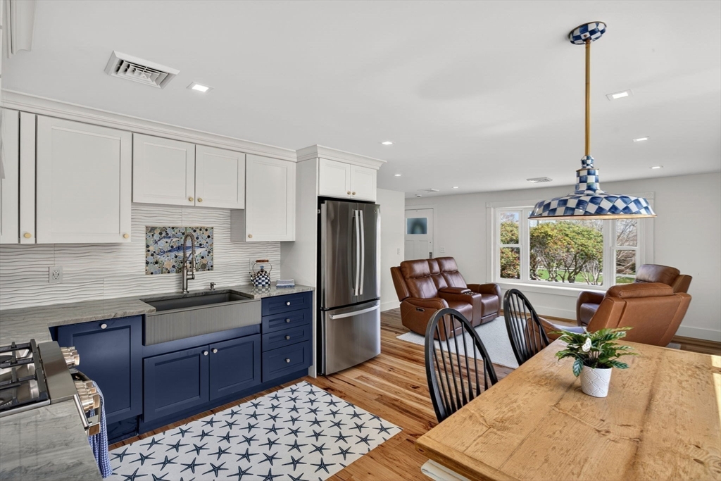 Cape Cod is beckoning! Move right in to this totally renovated home and enjoy the amenities Sandwich has to offer - whether year round or as a 'home away from home'. Tastefully planned remodel for comfort and easy living is this Ranch style home that starts with exterior curb appeal - new windows, doors, storm doors, siding, gutters, azek trim, shed. Step inside and be welcomed by an open living space, warmed by a gas fireplace, wide plank hickory flooring, coastal kitchen design with Kraft Maid cabinetry, stainless appliances, tile backsplash murals and built-in window seat with storage drawers. Two bedrooms, full luxury bath with tile shower and custom cabinetry. Additional space in the finished heated lower level provides a full bath and three rooms to function as entertainment space, private work-from-home office or exercise room. The attention to detail is impressive and too much to list here. Located near the Historic Village, Boardwalk, shopping and Cape Cod Canal.
