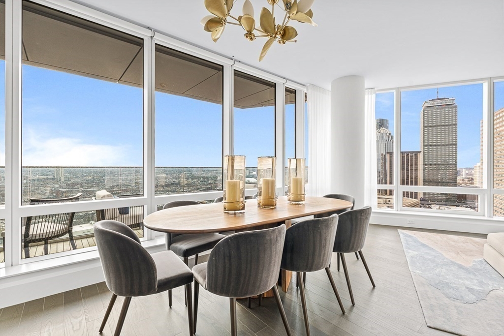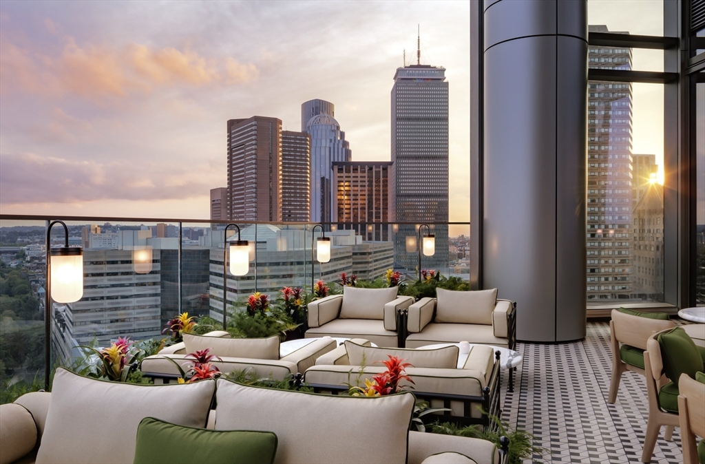 First offering of a highly sought-after A unit floor plan since the sellout of the upper residences at Raffles Boston Residences, this 1,832 sq ft southwest corner home defines elevated city living. Featuring two bedrooms, two and one half baths, and a full-size den, the layout is refined and functional. Floor-to-ceiling exposures capture sweeping views of the Boston Harbor Islands and the Charles River, with striking sunsets and natural light throughout. A private terrace overlooks Back Bay and the South End, extending the living space outdoors. Interiors are appointed with Sub-Zero and Wolf appliances, marble finishes, spa-like baths with soaking tub, and three customized closets in the primary suite. Custom wallpaper, lighting, and window treatments complete the home. Two valet parking spaces and private storage included. Residents enjoy 24-hour concierge, valet, in-residence dining, housekeeping, butler service, spa, fitness center, and indoor pool.