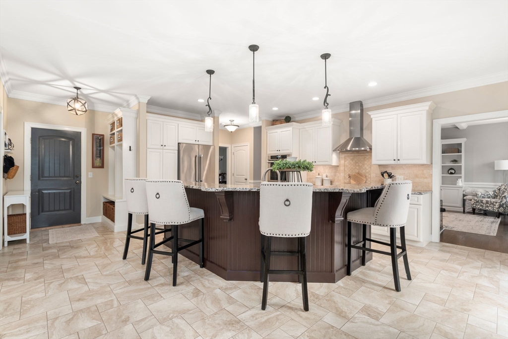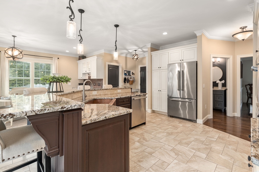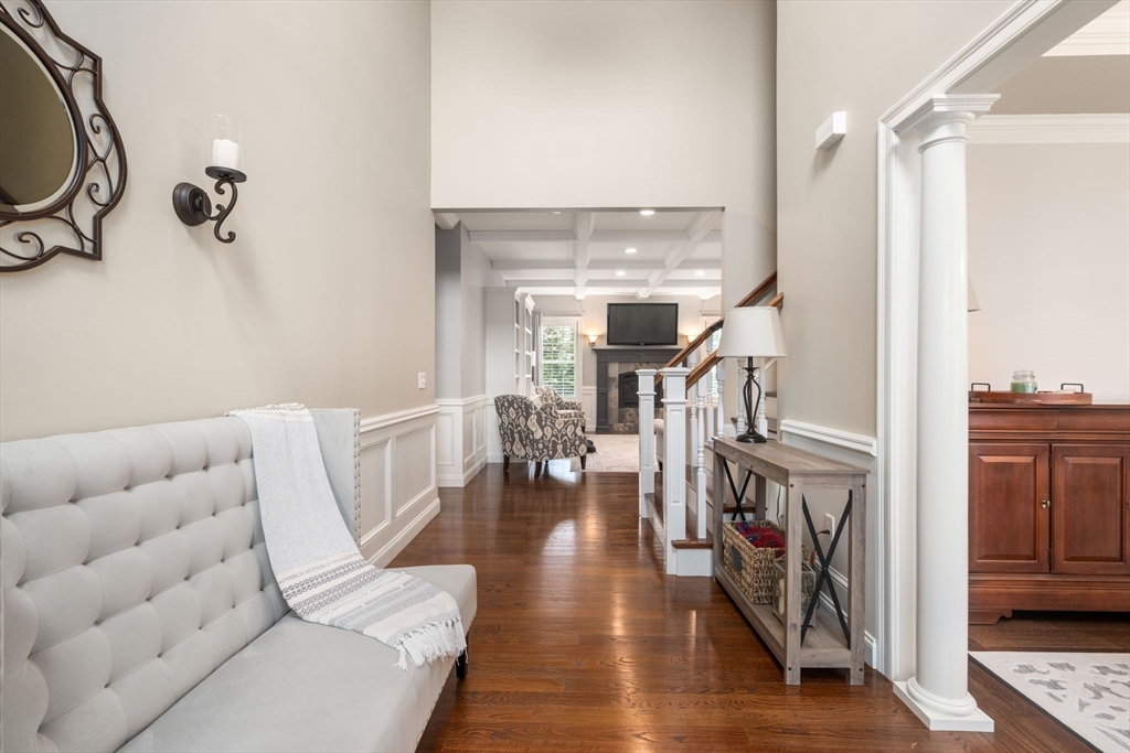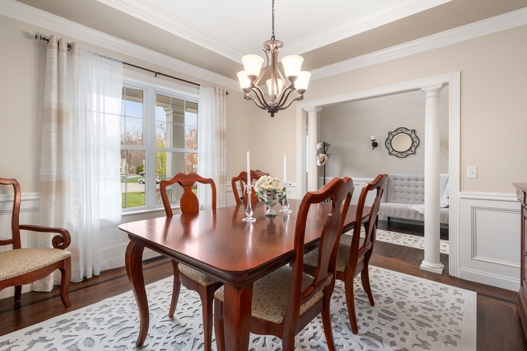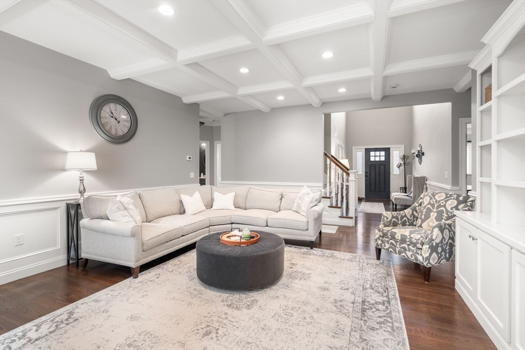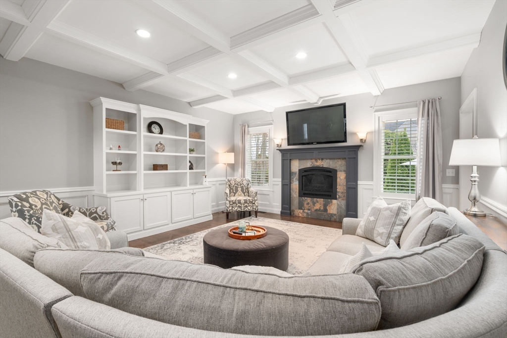 Stunning colonial featuring four spacious bedrooms with custom moldings, elegantly designed bathrooms, built in bookcases, coffered ceilings, plantation shutters and a gorgeous home theater. As you step inside, you'll be greeted by a bright layout that seamlessly blends comfort and style. The heart of this home is the exquisite kitchen, complete with granite countertops modern appliances, and custom touches throughout. The open-concept design flows effortlessly, ideal for gatherings with friends and family. all the and two gas fireplaces. The outdoor space is equally impressive, boasting beautifully landscaped grounds that provide a serene backdrop for outdoor entertaining. Whether you're hosting summer barbecues or simply enjoying a quiet evening, this backyard is the perfect oasis. Located withing a short distance to the highly rated High School, Middle school & Martin Grade School