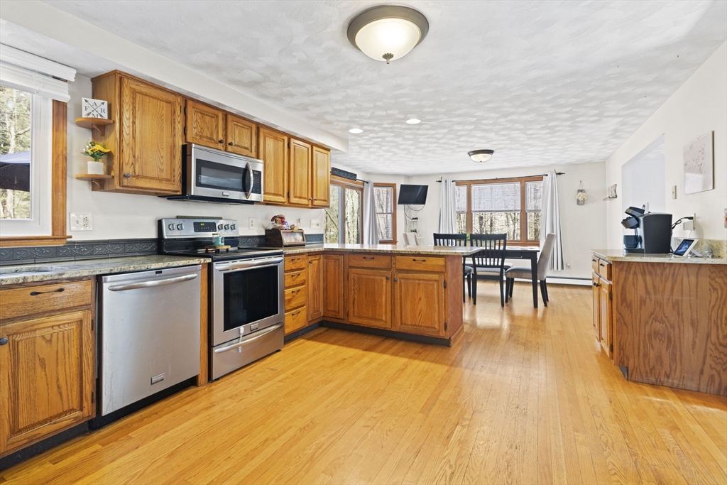 Experience the perfect blend of classic New England charm and modern efficiency. This gorgeous 3-bed, 1.5-bath Colonial is nestled on nearly one acre of wooded bliss, directly abutting serene conservation land for ultimate privacy.Step inside to an inviting open, flowing floorplan designed for effortless living. The expansive kitchen is a chef’s dream, featuring sleek granite countertops and stainless steel appliances. Cozy up in the spacious living room, anchored by a beautiful fireplace.With three Generous Bedrooms located on the second story and a smartly designed oversized Jack and Jill bathroom for convenience, this homes square footage is extremely deceiving. Hardwood flooring, new Mitsubishi high-efficiency heat pumps for year-round comfort and generator hookup are the perfect bonus features.Entertaining is a breeze on the huge deck overlooking your private sanctuary. Plus, a 2-car garage with stunning new doors adds the perfect finishing touch.