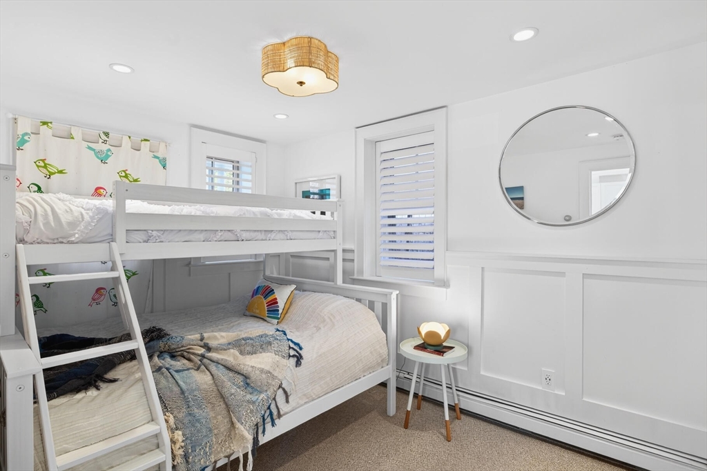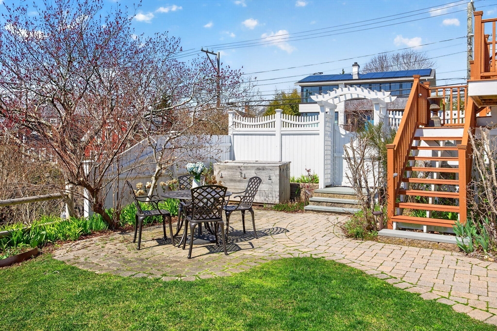 This bright, impeccably maintained two-bedroom West End residence has been thoughtfully renovated in recent years. Part of a well-run three-unit association, it balances comfort, style, and ease of living. Abundant natural light streams through multiple exposures, illuminating oak floors that run throughout. The kitchen is both refined and functional, featuring newer appliances, a soapstone countertop, and a breakfast bar ideal for casual dining. Two comfortably sized bedrooms offer good proportions and ample storage. The updated bath incorporates a stackable washer and dryer for everyday convenience. An exclusive-use mahogany deck creates a private outdoor retreat, perfect for relaxing or entertaining, while shared gardens with established plantings and distant water peeks enhance the setting. Additional features include a Nest thermostat, one assigned parking space, and basement storage with interior access. Monthly rentals are permitted, and pets are welcome for owners. Utilities ar