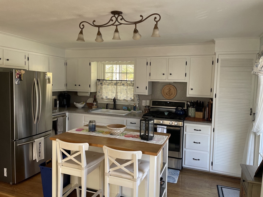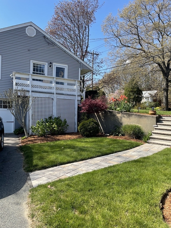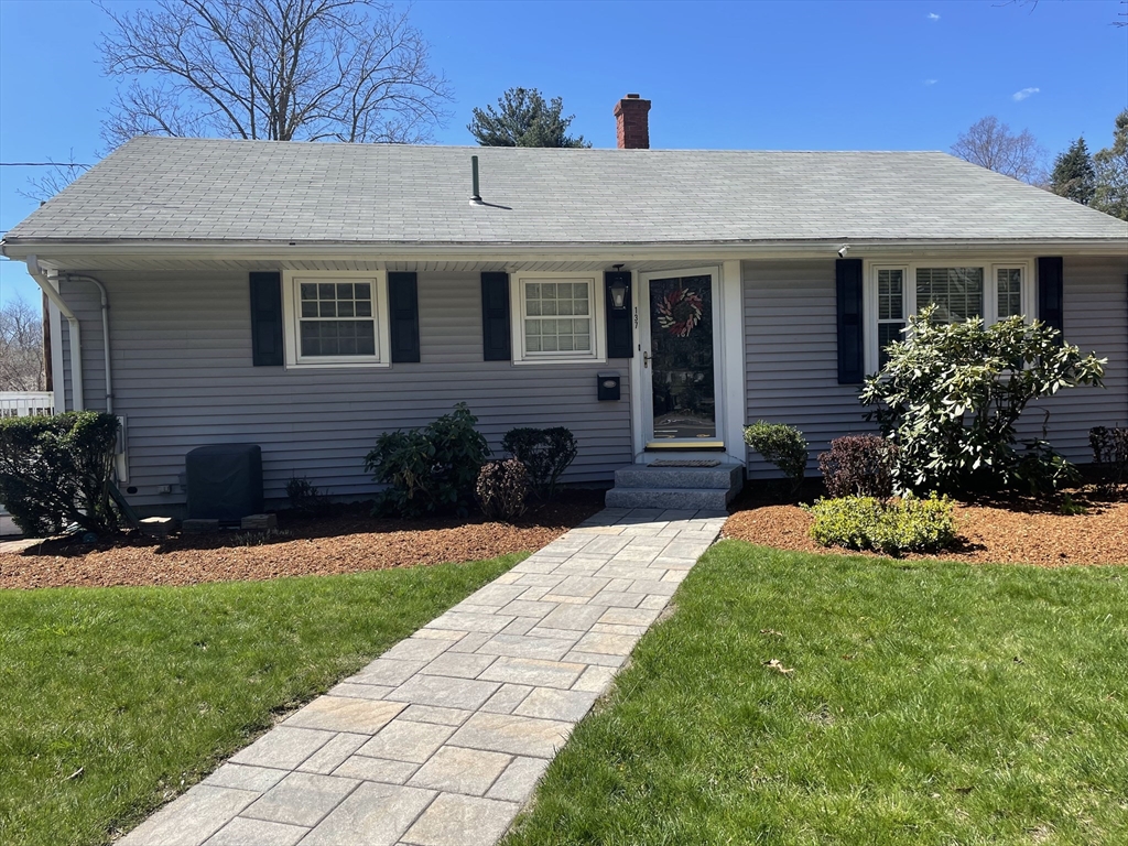 Charming 3-bedroom, 1-bath ranch located in Weymouth on a corner lot of a quiet dead-end street. This sun-filled home offers an open floor plan with hardwood floors throughout, an updated bathroom featuring a shower/tub combination. A finished walk-out basement offers great additional living space, filled with natural light from full-size windows, and includes interior access to a one-car garage. Step outside to a beautiful stone patio, surrounded by well maintained landscaped grounds with multiple garden areas. The private, fenced-in yard offers a peaceful outdoor retreat. Additional highlights include central air, laundry, and extra storage space. Conveniently located with easy access to highways and commuter rail. Nearby parks, beaches, and local attractions add to the appeal of this well-situated home