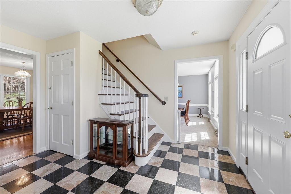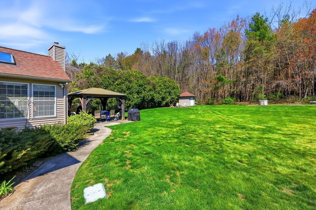 Location Location! Stately brick colonial in picturesque setting in desirable sought out South Brook Estates! Situated at the end on the cul-de-sac abutting lush woods for privacy! Grounds show off beautiful stone wall/landscaping, black fence leading to expansive private yard! Interior features open plan w/fabulous living space! Open living room/kitchen flows w/ease for entertaining/relaxing leading to a stunning great room w/skylights, beautiful windows, fireplace w/access to private backyard w/pergola/shed. Impressive formal diningroom, front office can also be used as a formal livingroom if needed. Main suite features own full bath, 2 walk-in closets.Other features are walk-in pantry, some freshly painted rooms, front/back sprinkler system, central air, 2 car garage w/access to basement. Some minor cosmetics will make this home yours! Located right before the Somers Ct line, easy few minutes to local shopping/restaurants, short commute to Highways, Baystate, Mercy, Bradley Airport.