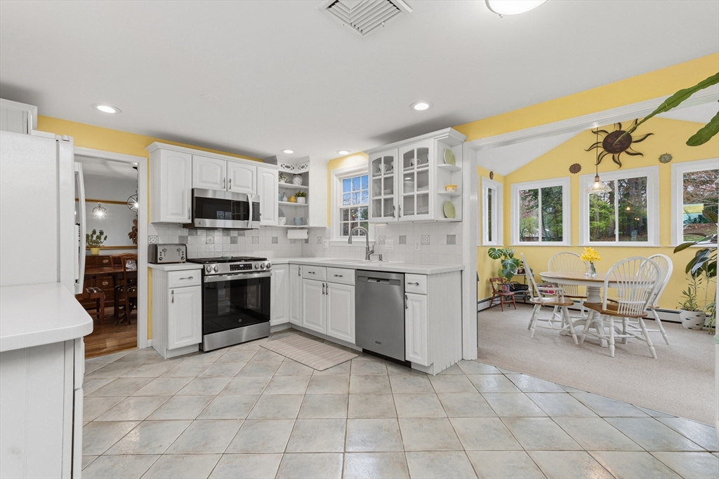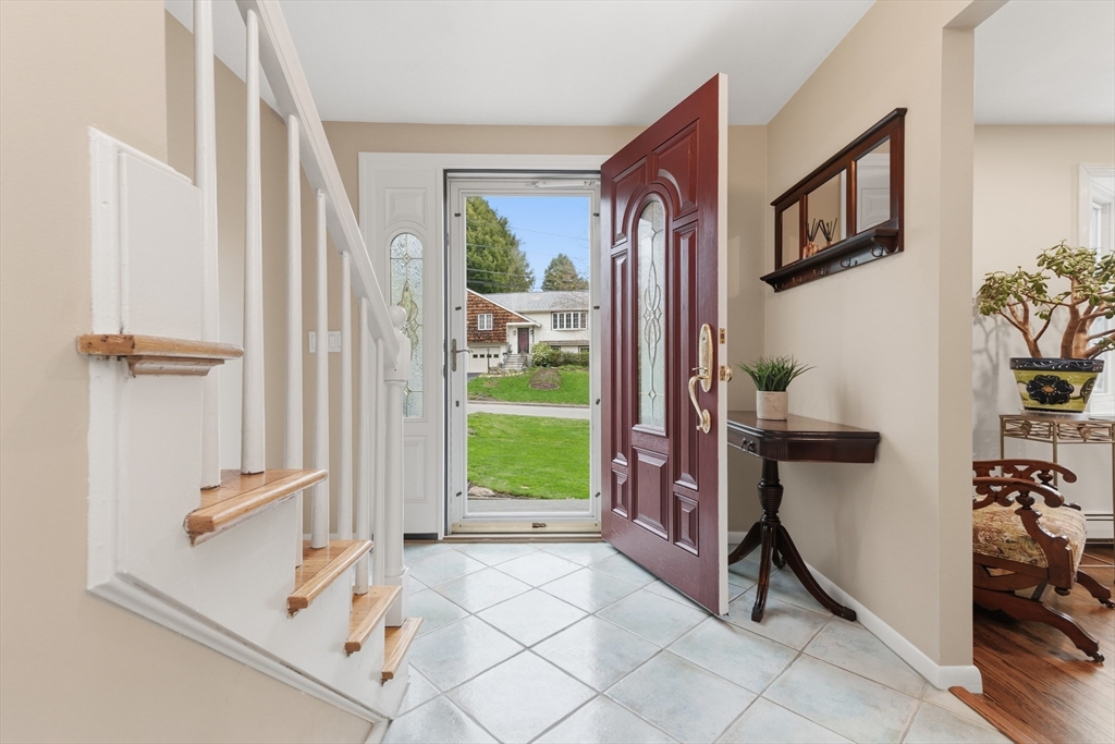 Welcome to 14 Fox Hill Rd, a beautifully maintained 4-bedroom, 3.5-bath colonial offering nearly 3,000 sq ft of move-in ready living space. Hardwood floors run throughout sun-filled living areas, including a spacious living room, formal dining room, and inviting family room with fireplace. The spacious kitchen features solid surface countertops, a dining area, stainless steel appliances and an easy flow for everyday living and entertaining. A bright sunroom overlooks the expansive backyard complete with a cascading waterfall. Once upstairs, you'll find the primary suite with 2 walk-in closets, three additional large bedrooms and 2 updated baths, both with radiant floor heating! The finished walk out lower level provides flexible bonus space with a full bath and exterior access. Set on a .75-acre lot with a two-car garage with a wireless automatic opener, central air, and convenient access to shopping, parks, and major routes—this home truly has it all.