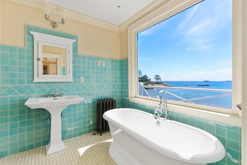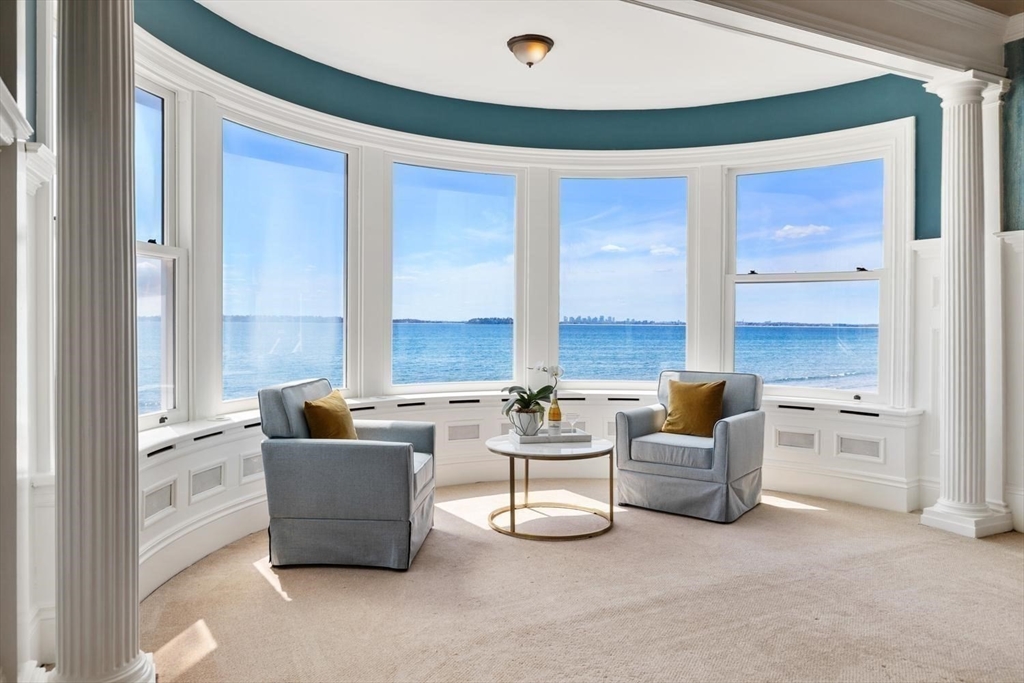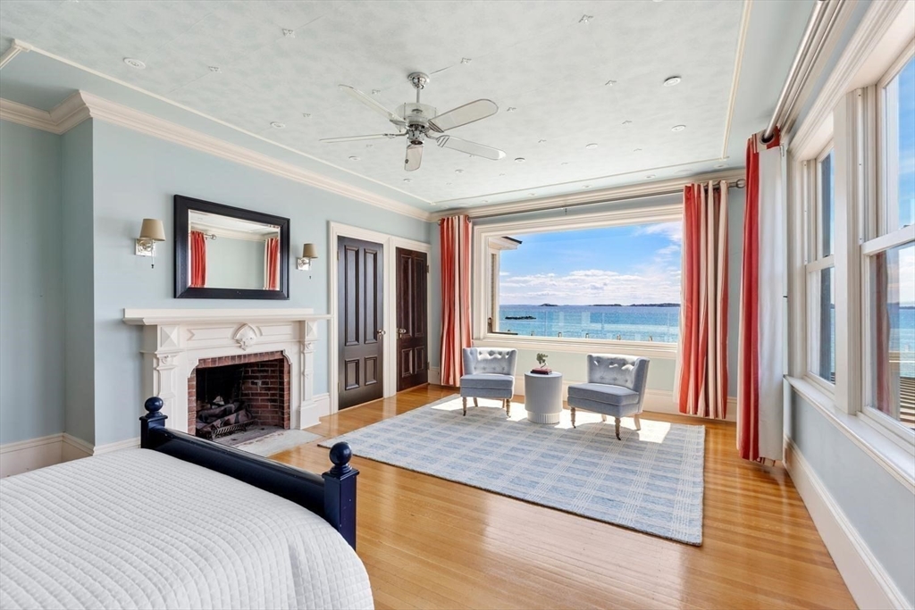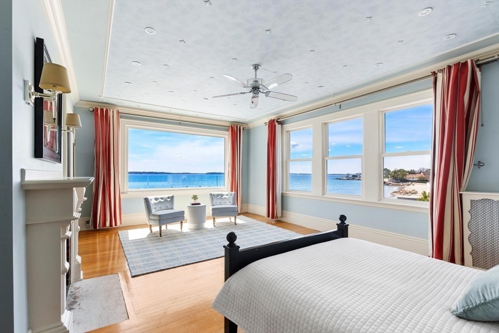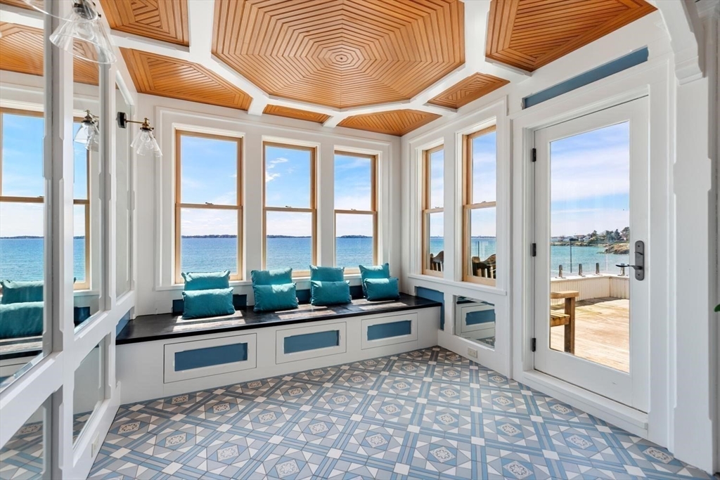 Rare Oceanfront Victorian Estate | Direct Beachfront | Boston Skyline Views directly on the ocean just 11 miles from Boston, this magnificent Queen Anne Victorian shingle-style estate offers an unparalleled oceanfront lifestyle. Featuring 8 bedrooms (4 ensuite), & multiple outdoor spaces, the home is designed for grand entertaining and relaxed coastal living. Wake to sweeping views of Boston's glittering skyline, harbor islands, and open sea from nearly every room. Direct beach access puts sand and surf at your doorstep. The chef's kitchen opens via French doors straight to the water, while the wraparound covered porch and pergola invite endless hours of coastal enjoyment. The original craftsmanship shines with inlaid hardwood floors, hand-carved balusters, stained-glass entry doors, rich wood paneling & multiple ornate fireplaces. A rare opportunity to own one of Swampscott's most iconic oceanfront estates, all just minutes from the commuter rail with direct service to Boston.