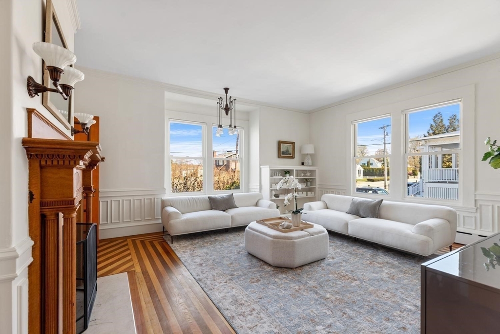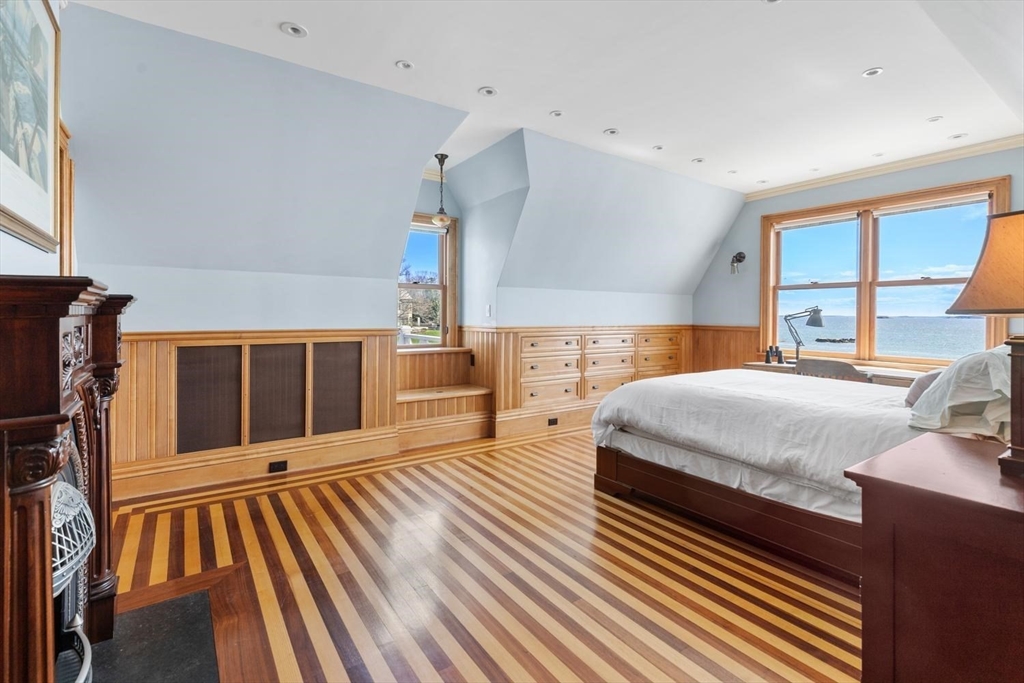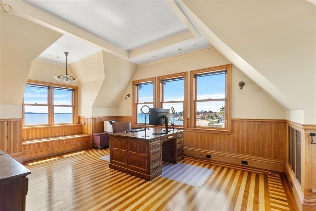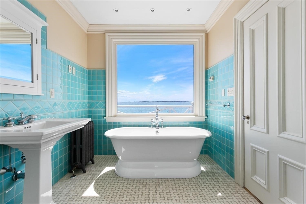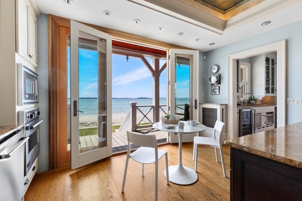 Rare Oceanfront Victorian Estate | Direct Beachfront | Boston Skyline Views directly on the ocean just 11 miles from Boston, this magnificent Queen Anne Victorian shingle-style estate offers an unparalleled oceanfront lifestyle. Featuring 8 bedrooms (4 ensuite), & multiple outdoor spaces, the home is designed for grand entertaining and relaxed coastal living. Wake to sweeping views of Boston's glittering skyline, harbor islands, and open sea from nearly every room. Direct beach access puts sand and surf at your doorstep. The chef's kitchen opens via French doors straight to the water, while the wraparound covered porch and pergola invite endless hours of coastal enjoyment. The original craftsmanship shines with inlaid hardwood floors, hand-carved balusters, stained-glass entry doors, rich wood paneling & multiple ornate fireplaces. A rare opportunity to own one of Swampscott's most iconic oceanfront estates, all just minutes from the commuter rail with direct service to Boston.