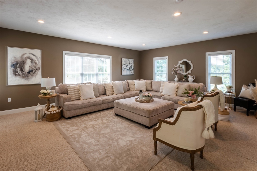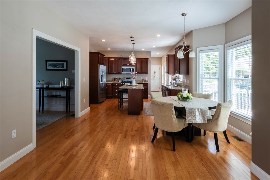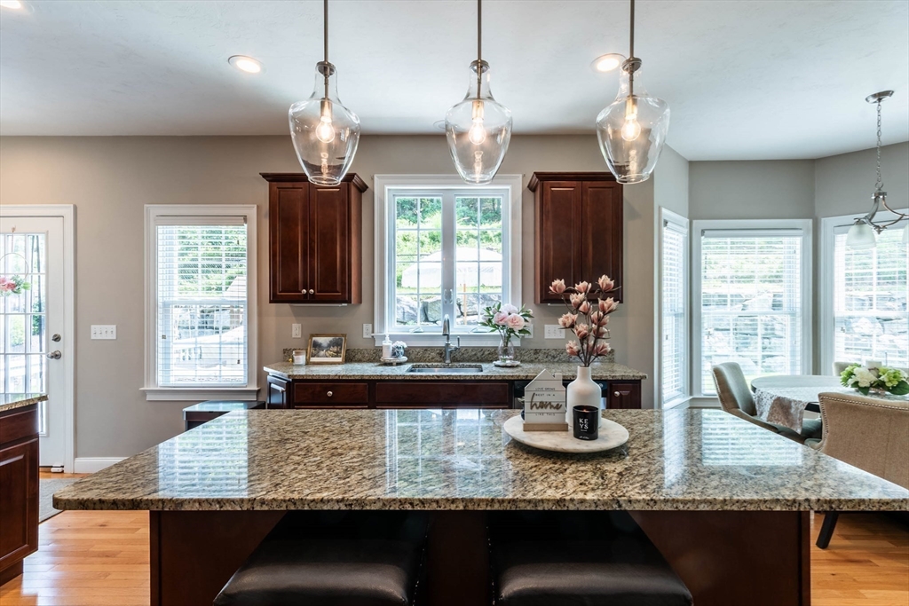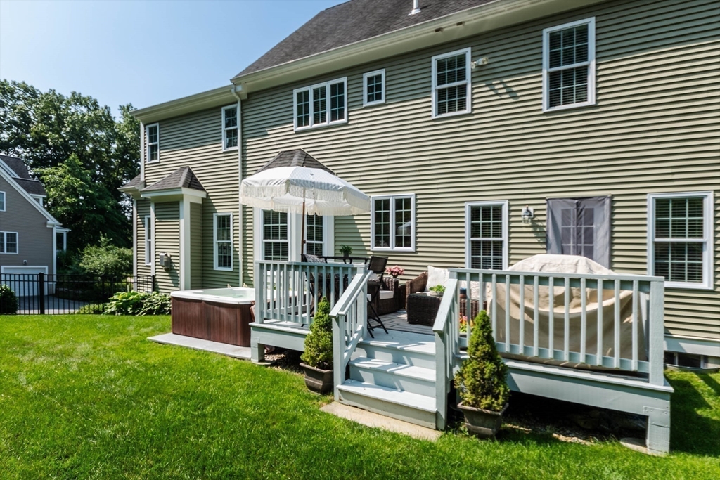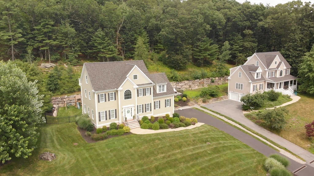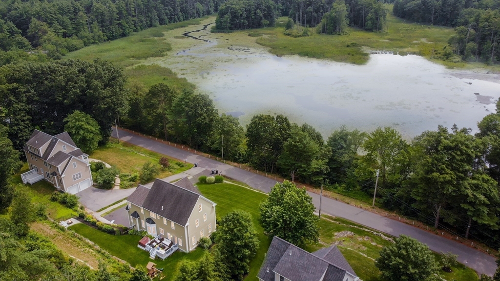 Sophisticated country living overlooking Delaney Pond! This meticulous 4-bedroom Colonial offers bright, sun-filled living and an inviting open flow throughout. A gracious cathedral foyer welcomes you into the fabulous front-to-back family room with gas fireplace. The gourmet kitchen features granite countertops, stainless steel appliances, center island, hardwood floors, and a sunny dining area. Entertain in the formal dining room with picturesque water views. A flexible living room or office, powder room, and laundry complete the first floor. Upstairs are four generous bedrooms, including a spacious primary suite with large private bath. A finished third-floor bonus room offers additional ideal space and flexibility. Beautifully landscaped grounds include a patio with fire pit, deck, hot tub, sprinkler system, fenced area, and nearby conservation trails. Close to Wedgewood Pines Country Club, orchards, and Master's Academy International, making this an incredible opportunity!
