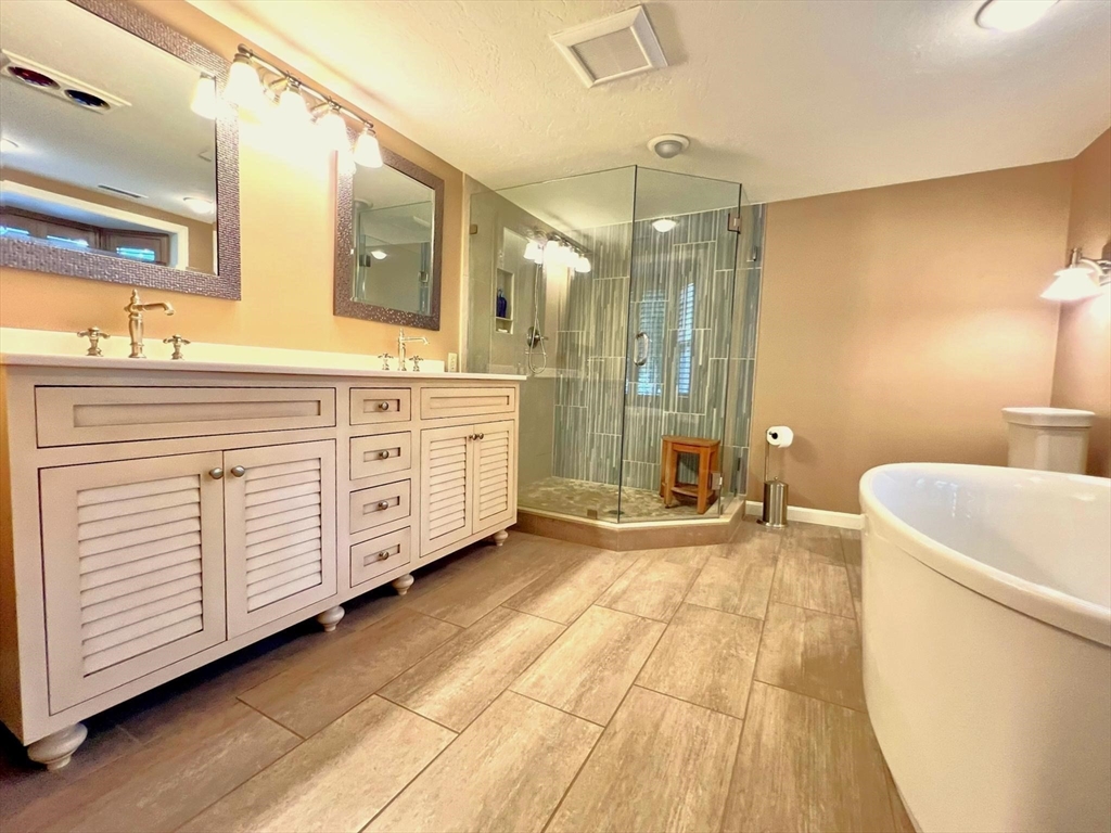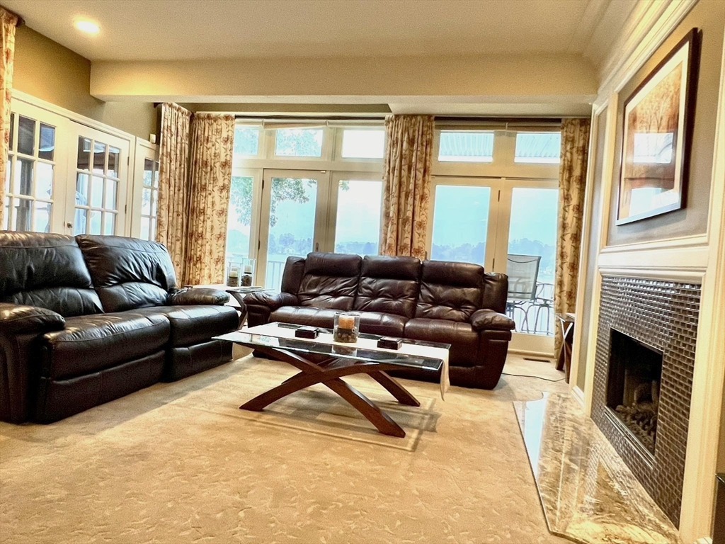 WEBSTER LAKE SNUG HARBOR VILLA! THIS END UNIT IS THE MOST LUXURIOUS & LARGEST ON THE LAKE! Presenting a distinguished condo residence at 22 Union Pt Rd, Webster, an attractive property that will provide an exceptional waterfront lifestyle! This expansive 4600 sf+/- property is in great condition, offering an attractive environment designed for sophisticated comfort. The kitchen is a culinary focal point, w/high-end SS built-in appliances, stone counters, peninsula, dining room that enhance the aesthetic appeal, provide functionality & a great place to gather. The living rm & upper level family rm provide an atmosphere of grandeur with high vaulted ceilings, further illuminated by strategically placed skylights, sliders & glass walls. Features 4BRs, 4-1/2 baths & 3 fireplaces designed for relaxation & convenience w/main BR suite w/gracious private bath w/soaking tub & double vanity, a 2nd BR suite w/private bath & incredible LL living area w/walkout directly to the water's edge!