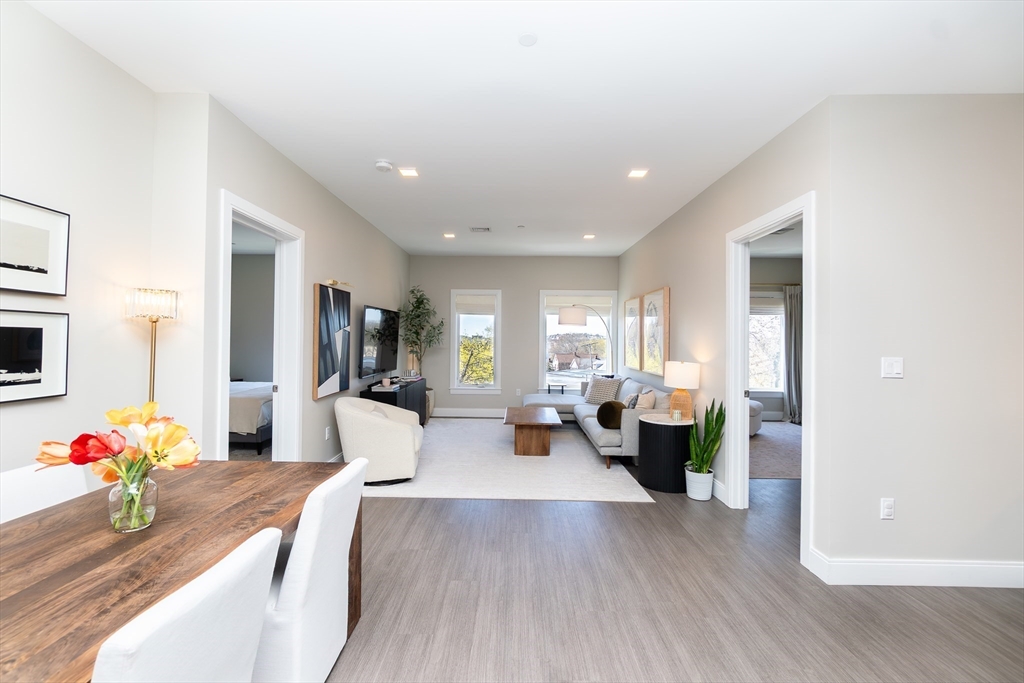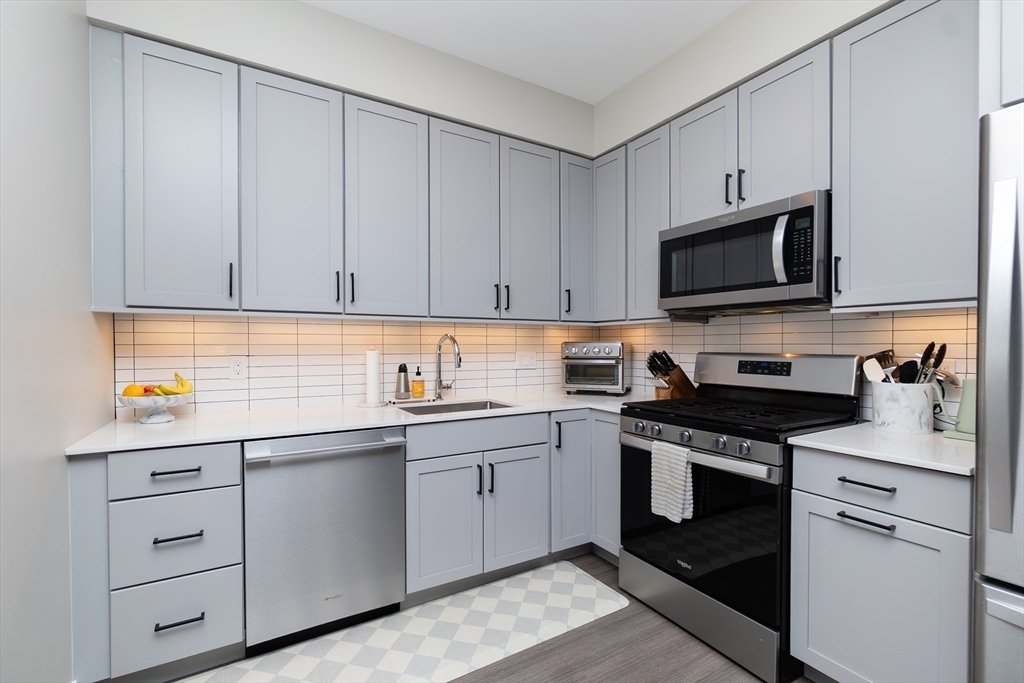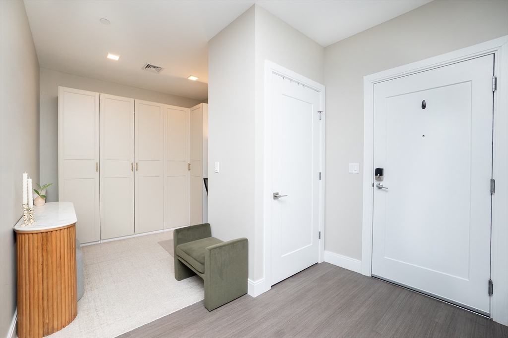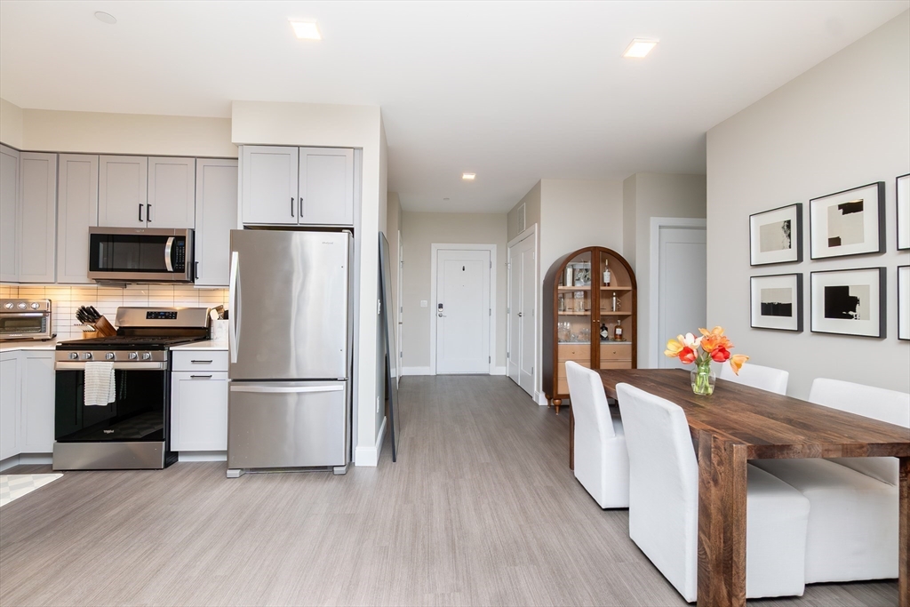 Flexible Move-In: Aug/Sept Start Date: This stunning residence at The Pacer offers modern luxury living next to the Suffolk Downs T Station. This thoughtfully designed 2-bedroom, 2-bath home features ~1,172 sq ft of open-concept living with high-end finishes throughout. The kitchen is outfitted with sleek cabinetry, a quartz peninsula, and stainless steel appliances, opening into a bright, spacious living area. A dedicated office area with custom built-ins adds ideal work-from-home flexibility. The primary suite features a large closet and ensuite bath. Upon entry, a second full bath sits next to the in-unit laundry. Enjoy central air, in-unit laundry, engineered flooring, and smart home features. Nearby favorites include Jalisco Taqueria, Cafe Dello Sport, Twisted Fate Brewing, and Crush Pizza. Amenities include garage parking, elevator, fitness center, resident lounge, package room, and bike storage. Close to Constitution Beach and just a 10 min train commute to downtown Boston.