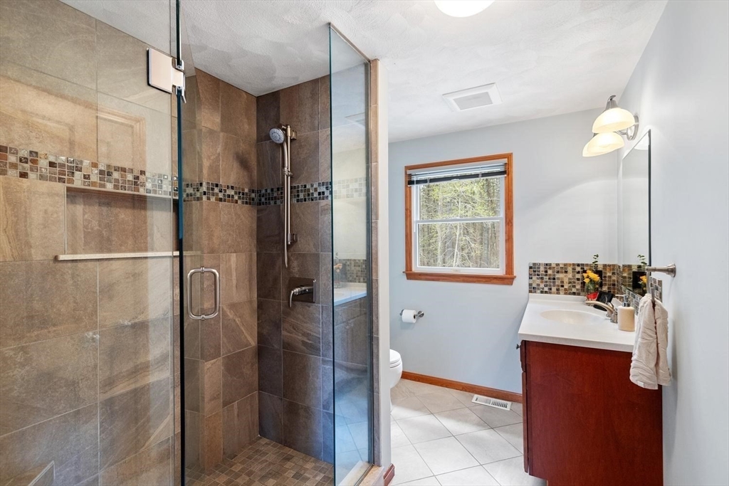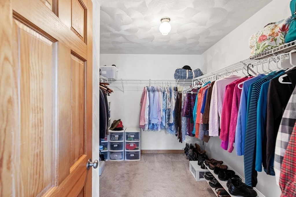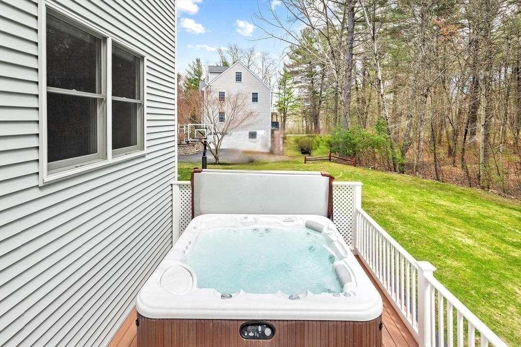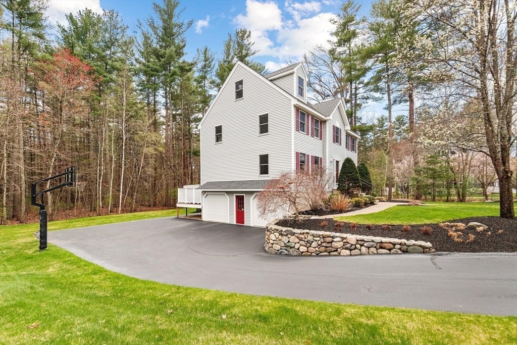 Meticulous 4 bedroom, 2.5-bath Colonial in one of Wilmington's highly desirable neighborhoods. Tucked in at the end of the cul-de-sac, this spacious home offers privacy & a professionally landscaped setting to be enjoyed on your 2-tier deck w/ hot tub & 3 season porch. The 1st floor features hardwood, spacious living areas, and a 1/2 bath. Second floor has laundry area & 4 generously sized bedrooms, the primary includes a walk-in closet and an updated bath. The finished basement provides flexible additional living space, while the sun-filled unfinished walk up attic offers incredible potential for future expansion. A large 2-car garage, a well for your irrigation system, town water and sewer. This home has been updated with major system improvements, Bosch heatpump for heating/ cooling with backup furnace (2022), Navien tankless hw heater (2024) and roof replacement (2021), offering efficiency and peace of mind for years to come. Convenient to the highway, commuter rail and shopping.