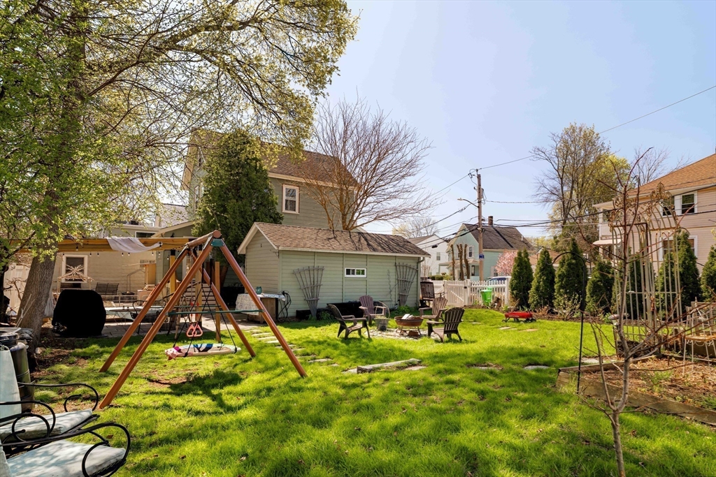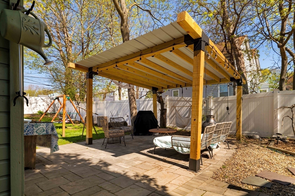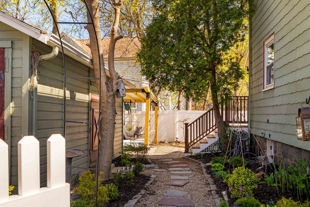 Welcome to 10 Gilman in Roslindale, the charming single family you've been waiting for. Situated on a double corner lot, the fenced yard is a true paradise in the city. A welcoming farmer’s porch leads into the bright, open living room with high ceilings, and a renovated eat-in kitchen featuring beadboard cabinetry, stainless steel appliances, and polished concrete countertops w/ sea glass & shell aggregate. A mudroom w/ laundry and convenient half bath round out the main level. Upstairs, a spacious primary bedroom, fit for a king, w/ walk-in closet, a second bedroom, a full bathroom, and office nook w/ window seat overlooking the yard. Plenty of storage in the pull down attic & unfinished basement. Outdoors, the tremendous yard has something for all - digging in the dirt, playing catch, working outdoors on the shaded patio, hosting movie nights, birthday parties, or perhaps Porchfest! On a side street just off Cummins Highway, a quick zip to public transit, shops & restaurants.