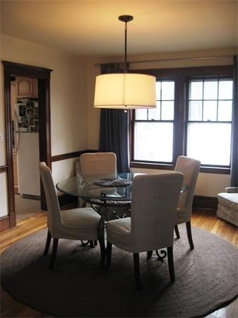Convenient Newton Center location. Second floor of a two unit home with large living room having decorative fireplace, separate dining room, office with half bath, two spacious bedrooms and full bath. Eat-in kitchen with access to deck via sliders. Washer and dryer available in the basement of home. Two parking spaces, gas heat and central air. The location is perfect for easy access to the green D line of the T, the shops and restaurants of Newton Centre and convenient access to Rt 9 and Rt 128. Pets are considered on a case by case basis.