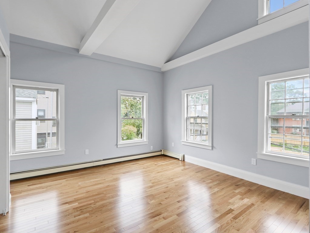 Available 8/1, Welcome to 50 Roberts Road in highly sought-after Mid-Cambridge! This beautifully updated single-family home blends classic Greek Revival charm with modern, open-concept living. Sun-filled living and dining areas flow seamlessly into a contemporary kitchen featuring granite countertops, high-end appliances, and refined finishes throughout. A convenient half-bath rounds out the first floor. Upstairs, all three bedrooms offer a true retreat with soaring cathedral ceilings, skylights, and abundant natural light, complemented by a timeless, spa-inspired full bath. Enjoy a private outdoor oasis with a spacious deck and fenced yard—ideal for relaxing or entertaining. Additional features include a bonus fitness/storage room, coveted 1-car garage parking, and premium Miele washer and dryer. Don't miss this rare opportunity to lease a stylish, spacious home in a prime Cambridge location with unbeatable access to Harvard University, Inman Sq, Central Sq, and Kendall Sq.