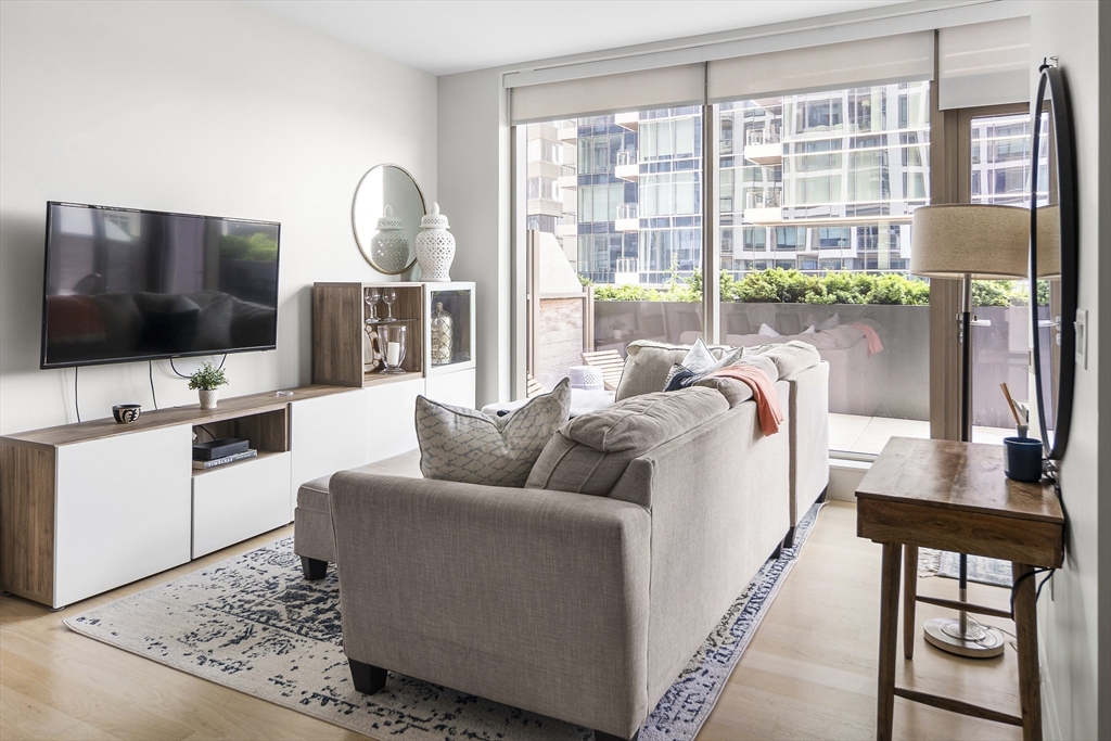 Welcome to the Echelon! This stunning 1 bedroom 1 bathroom comes with 1 valet parking space. To top off this unit you have a private 293 sqft private terrace overlooking Seaport Blvd with a partial harbor view. Finishes include white oak wood plank floors throughout, open kitchen with custom Italian cabinetry, Bosch integrated appliances, and spa like marble bath. Echelon Seaport residents enjoy 1 indoor and 2 outdoor pools as well as state of the art fitness facilities including an indoor basketball court, golf simulator and yoga studio. Residents also enjoy services including 24/7 concierge!