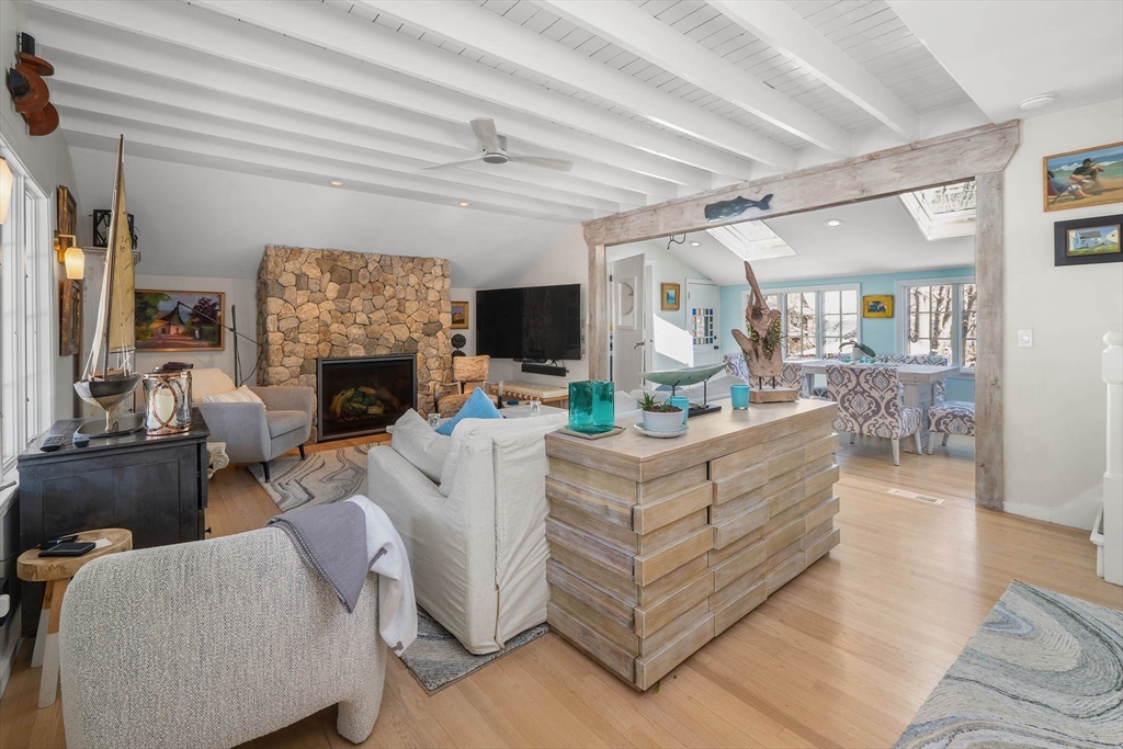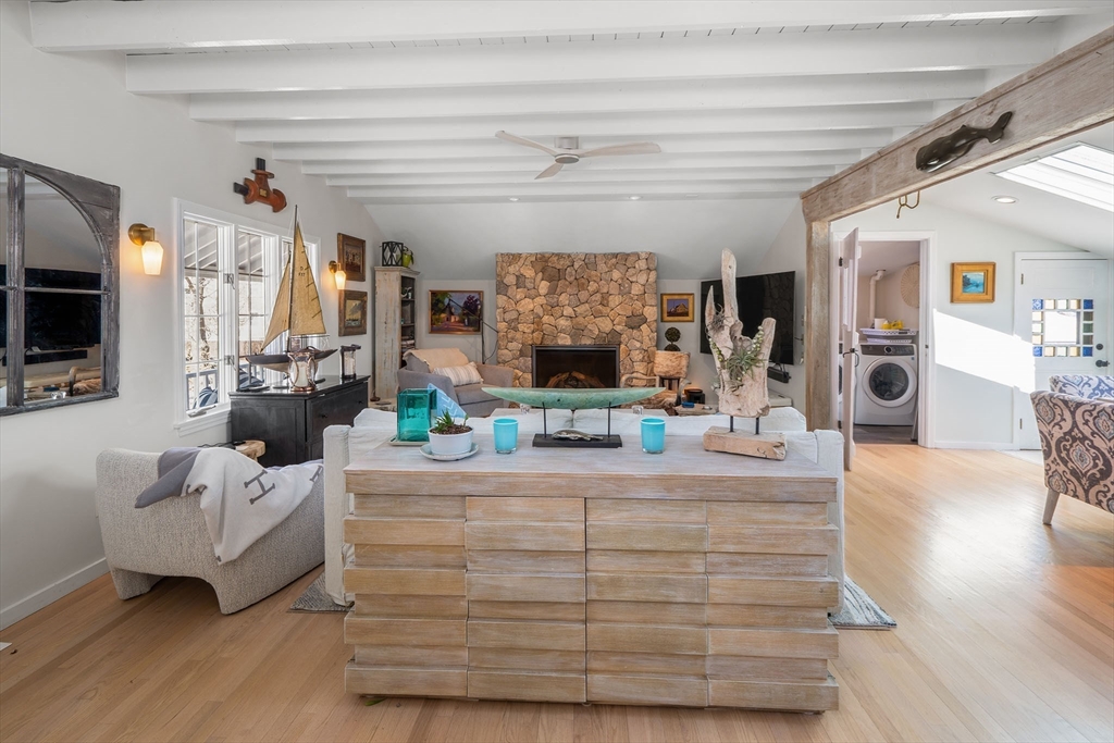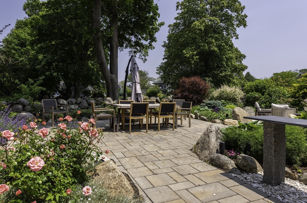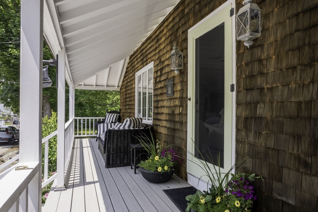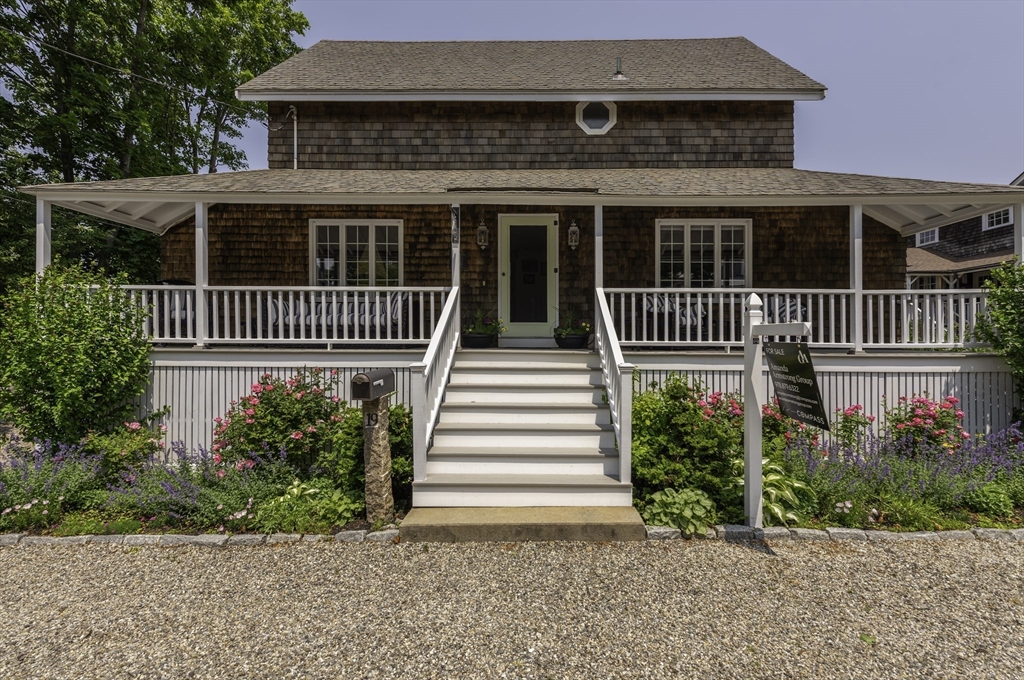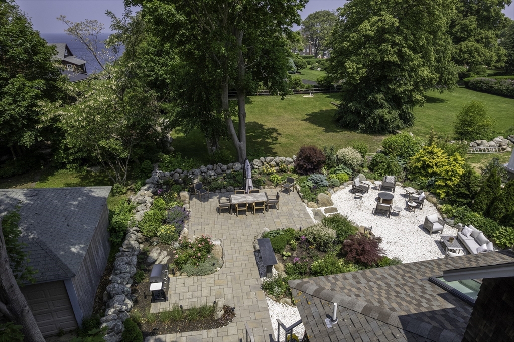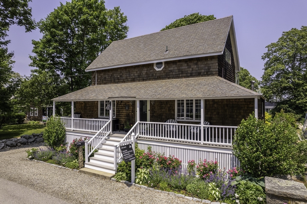 Located in Rockport’s desirable Old Garden Beach neighborhood, this classic renovated shingle style home offers seasonal ocean views of the water and effortless coastal living. The light filled interior features an open layout with a custom kitchen, marble counters, and a living room with beamed ceiling and fireplace. The first floor includes a bedroom and full bath allowing for single level living, while two additional bedrooms and a full bath are located upstairs along with a balcony capturing ocean views. Professionally landscaped grounds designed by an accomplished gardener create exceptional outdoor living with a fire pit and private garden spaces. A full height walk out basement offers expansion potential. Moments to Old Garden Beach and ideal as a year round home or seasonal retreat.