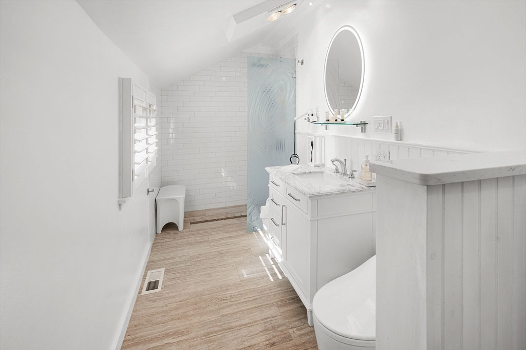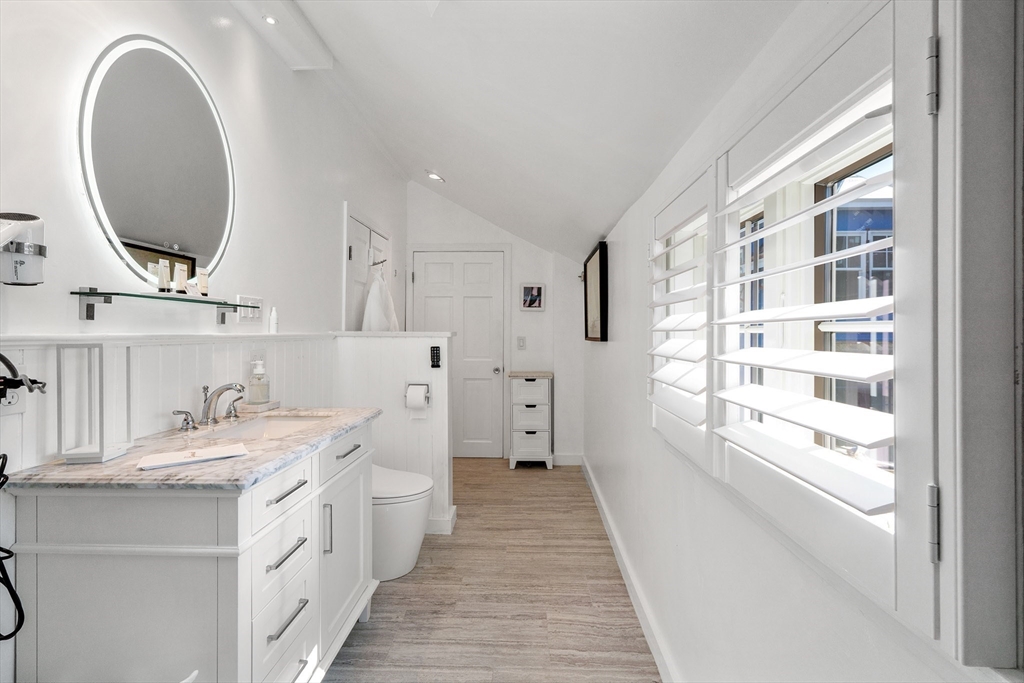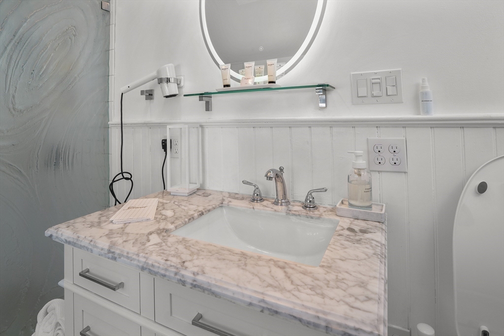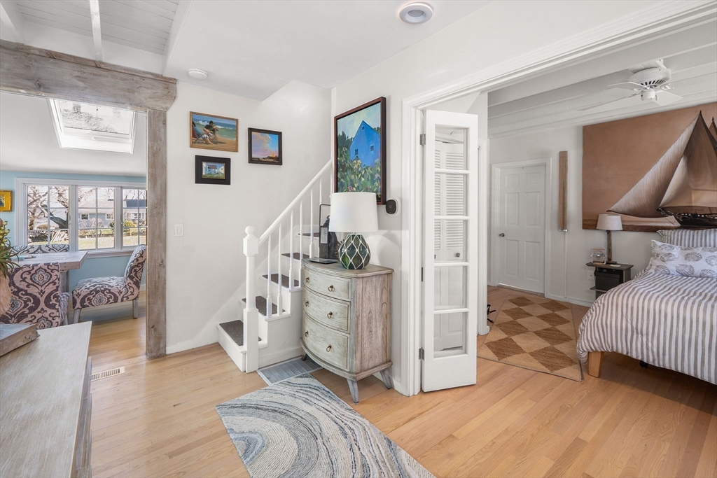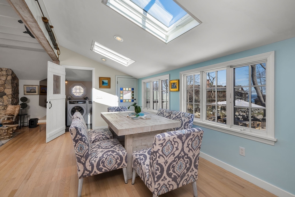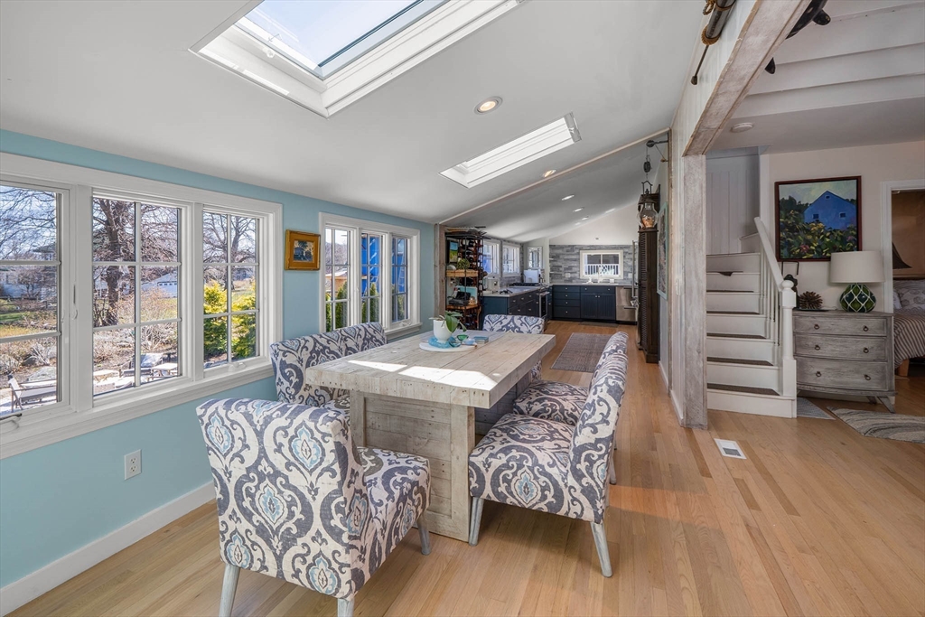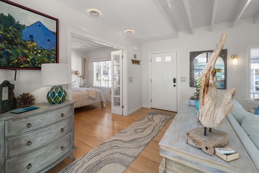 Located in Rockport’s desirable Old Garden Beach neighborhood, this classic renovated shingle style home offers seasonal ocean views of the water and effortless coastal living. The light filled interior features an open layout with a custom kitchen, marble counters, and a living room with beamed ceiling and fireplace. The first floor includes a bedroom and full bath allowing for single level living, while two additional bedrooms and a full bath are located upstairs along with a balcony capturing ocean views. Professionally landscaped grounds designed by an accomplished gardener create exceptional outdoor living with a fire pit and private garden spaces. A full height walk out basement offers expansion potential. Moments to Old Garden Beach and ideal as a year round home or seasonal retreat.